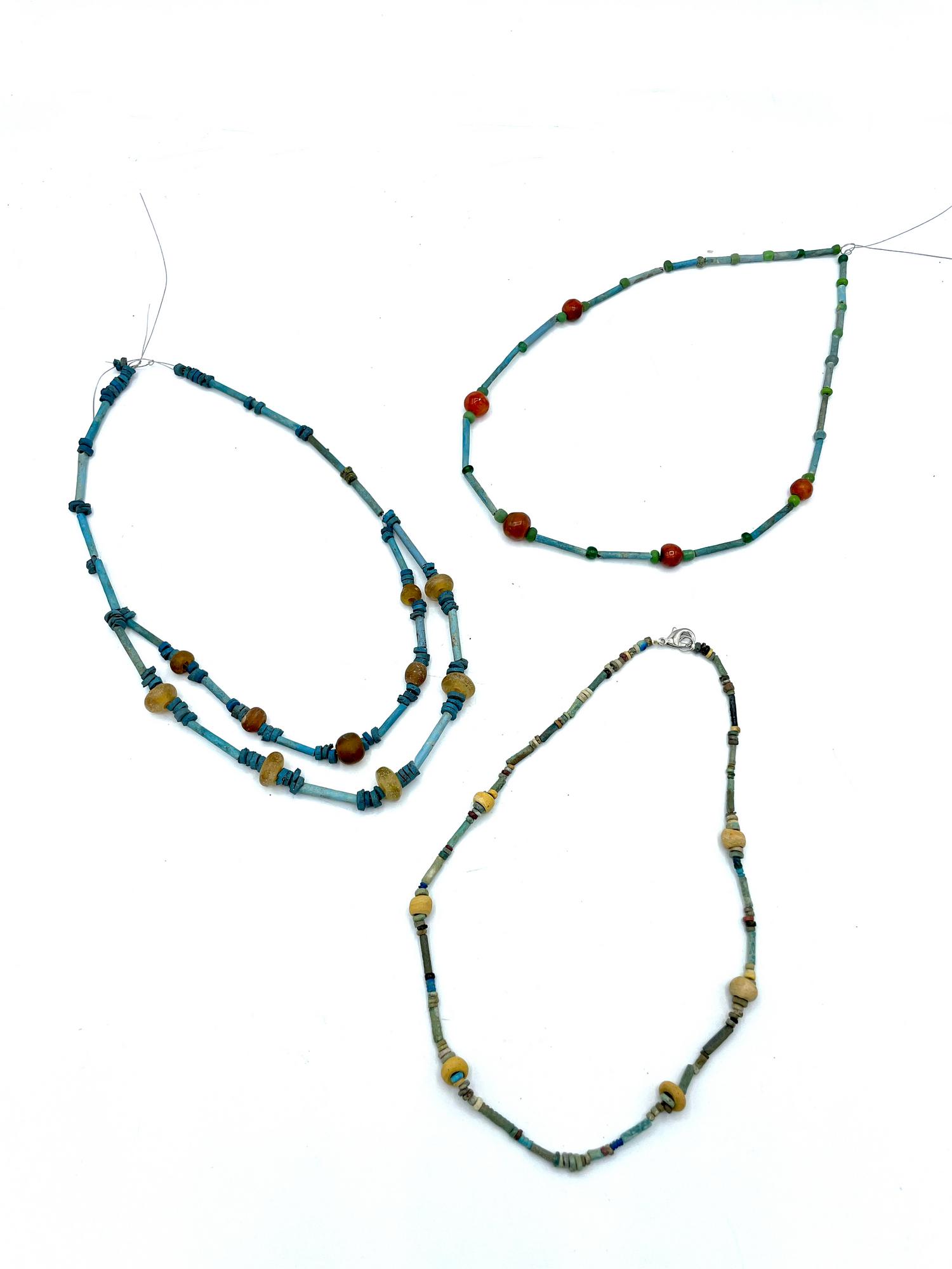 Una collana a due fili e due ad un solo filo con tubuli in faience azzurra, vaghi in corniola e pasta vitrea (3)