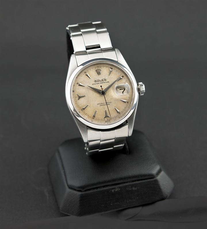 ROLEX Oyster Perpetual Date, ref. 6530, anni '50 Diam 34 Cassa oyster in tre...