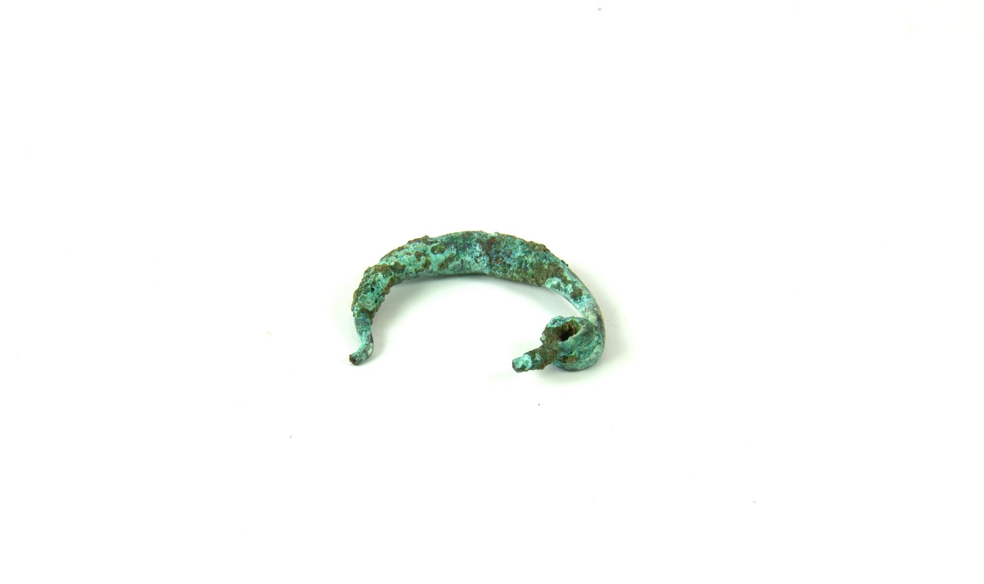 Fibula ad arco semplice ingrossato con molla a tre giri, priva di parte dell'ardiglione e della staffa