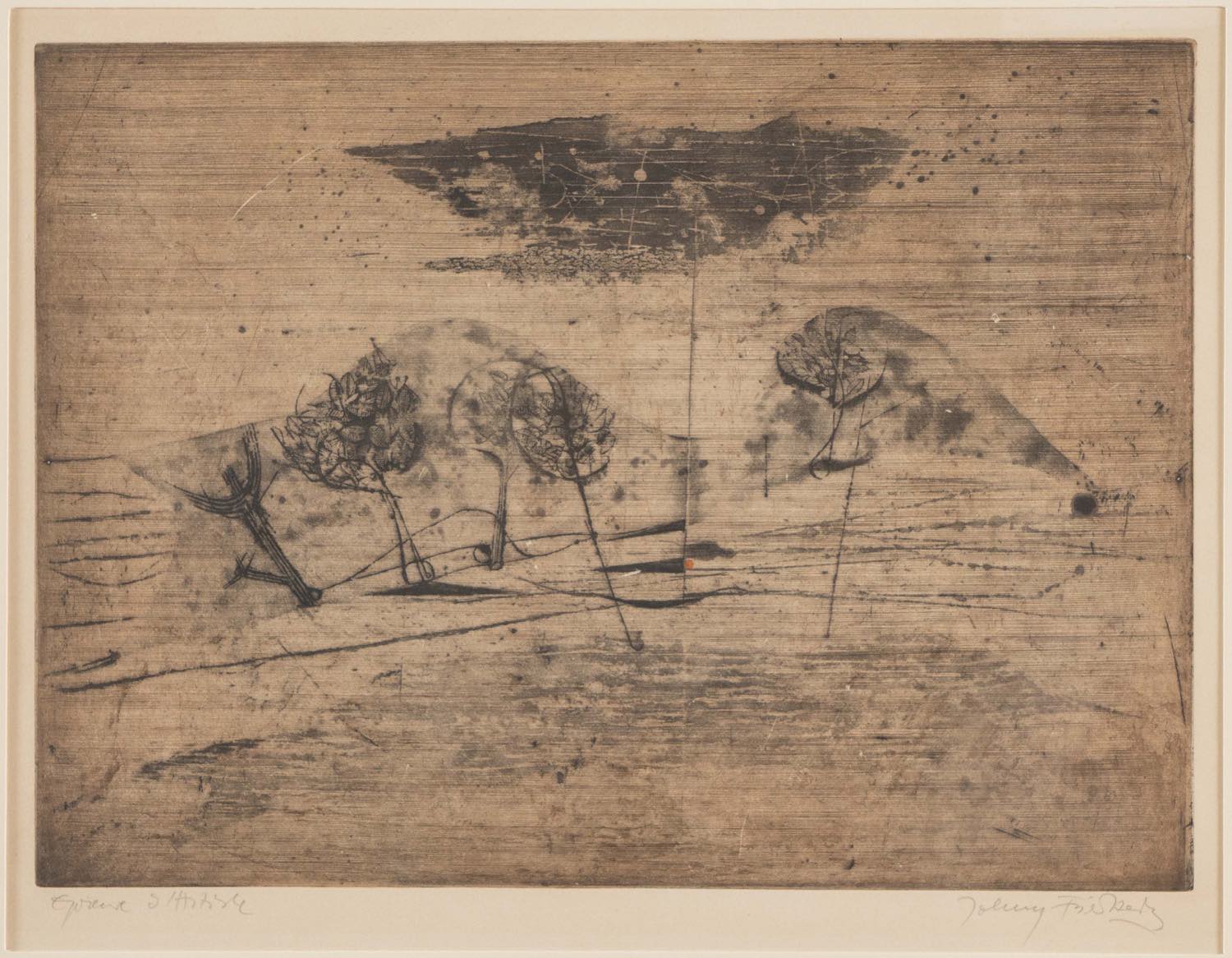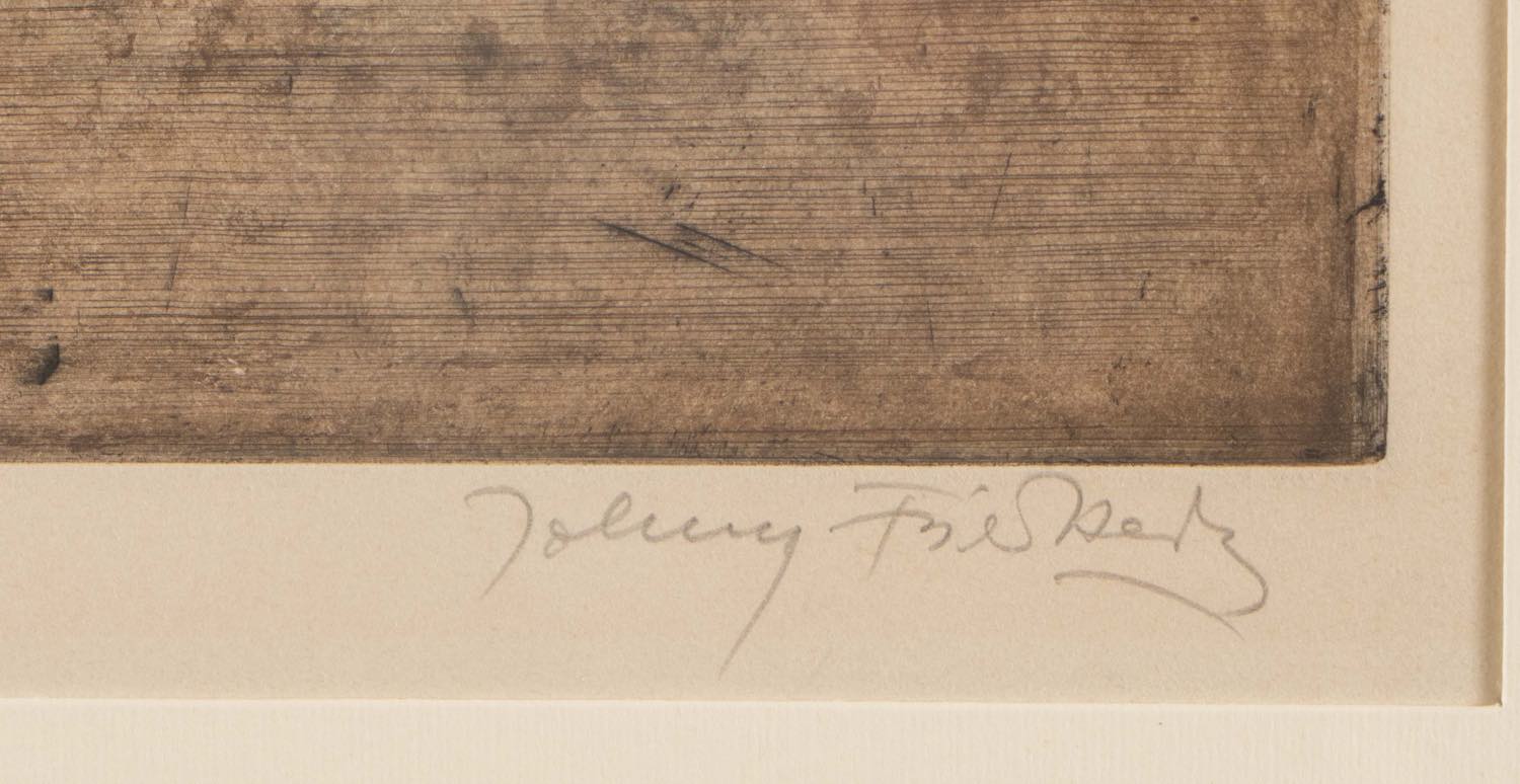 Acquaforte su carta, firmata in basso a destra “Johnny Friedlaender”, reca in basso a sinistra iscrizione “Epreuve d’Artiste”, Lastra H cm 34x45 – con cornice H cm 61.5x70 - Provenienza: Galleria La Loggia – Bologna.