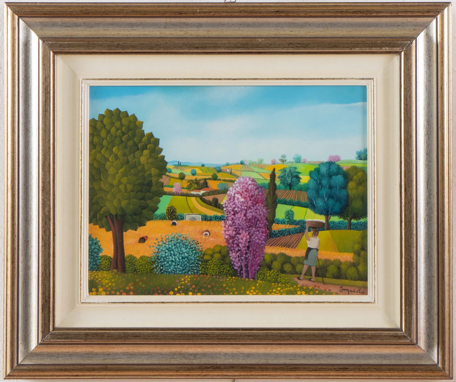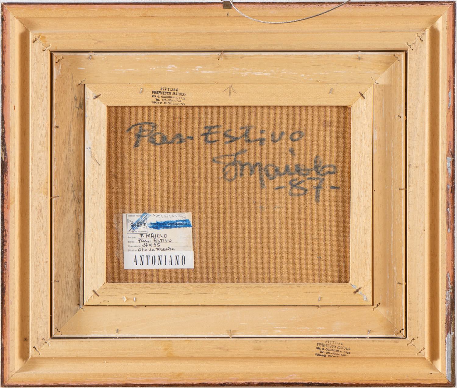 Olio su faesite, firmato in basso a destra “F Maiolo”, reca al retro titolo, firma dell’artista e data, timbri dell’artista e etichetta Associazione Piemontese Gallerie d’Arte Moderna – Piossasco (TO), H cm 27x35 – con cornice H cm 46.5x55
