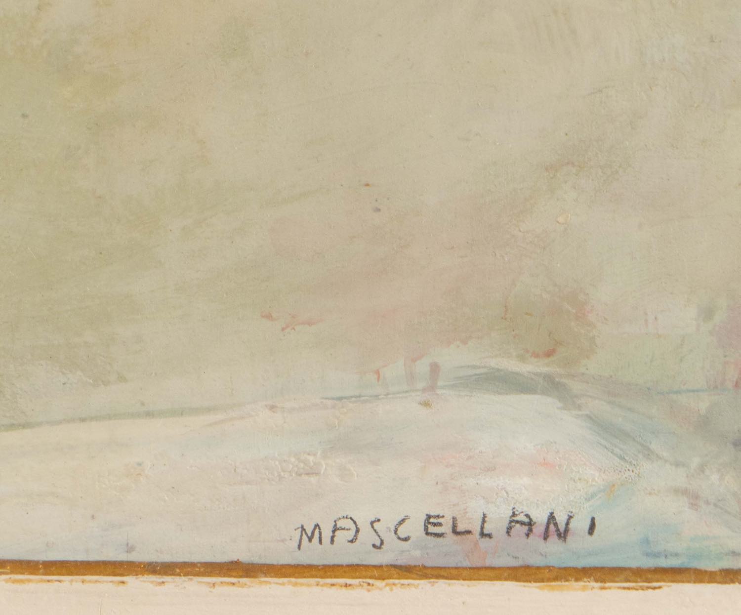 Olio su tavola recto-verso, firmato in basso a destra “Mascellani”, reca al retro dipinto raffigurante “Paesaggio”, H cm 54x43 – con cornice H cm 66x56