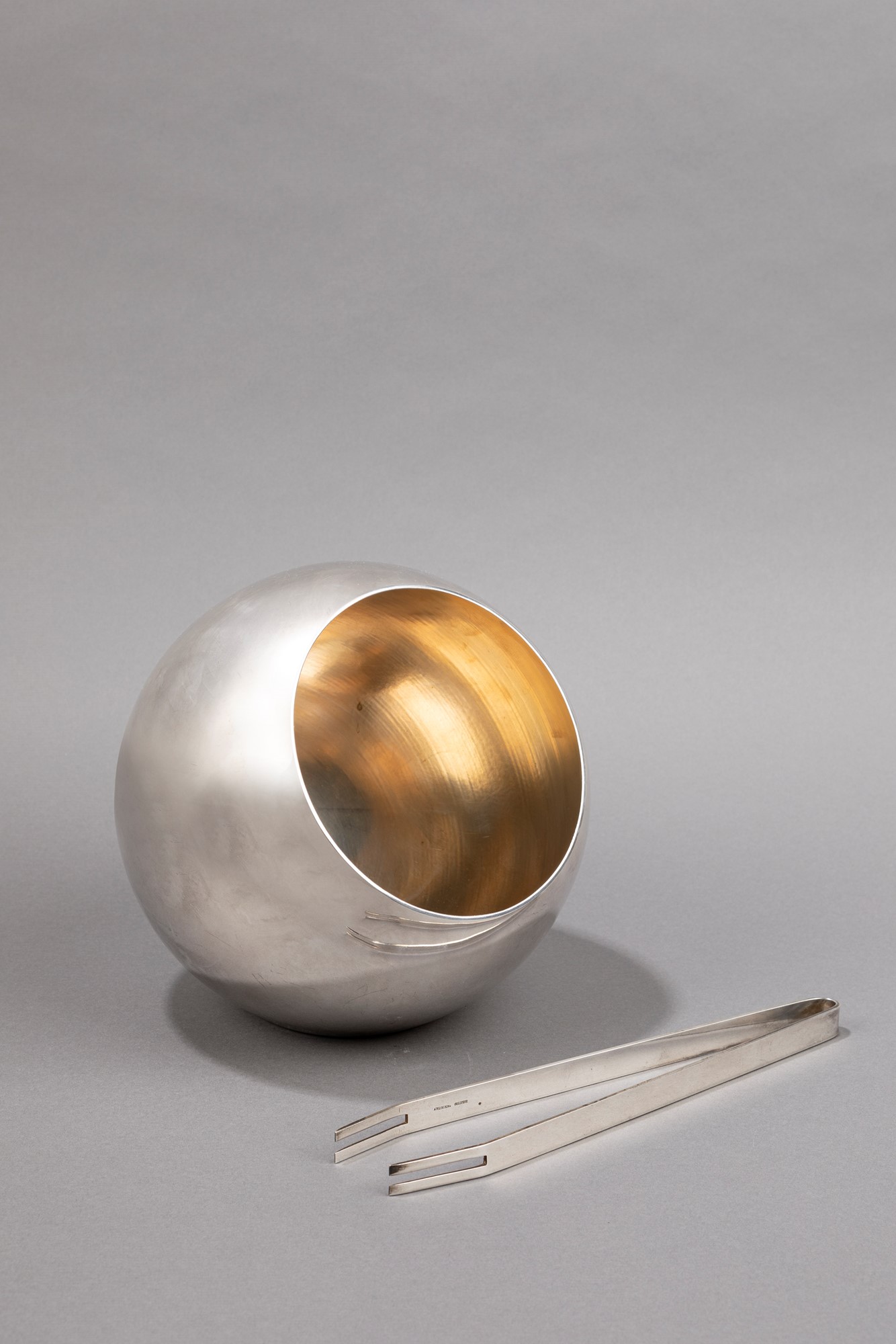 Lino Sabattini - Secchiello portaghiaccio20 x 20 cm in metallo argentato, pinza inclusa.