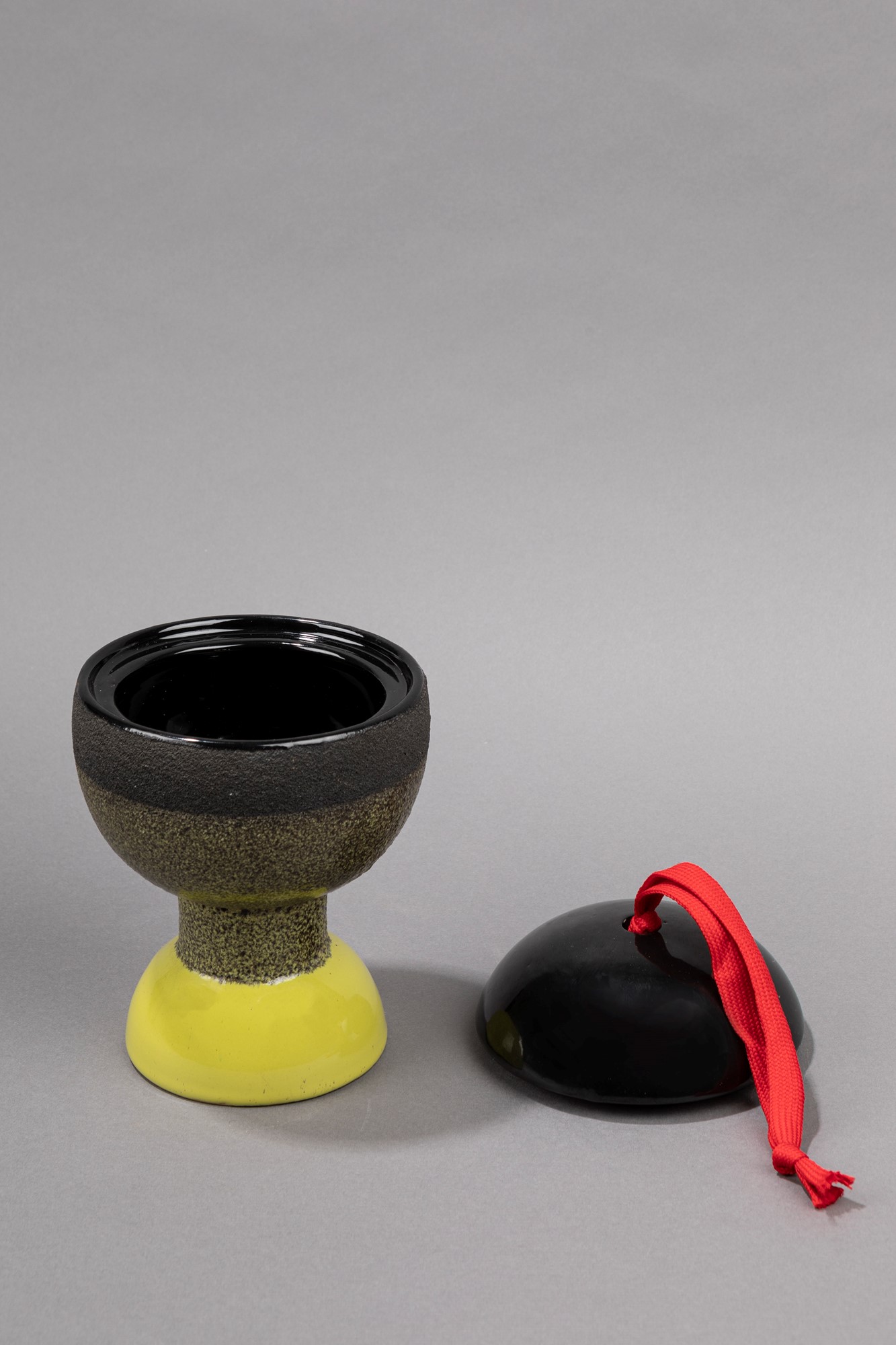 Ettore Sottsass Jr - Ceramiche di lavah 19 x 13 x 13 cm Modello 378. Ceramica smaltata nera, marrone e gialla.