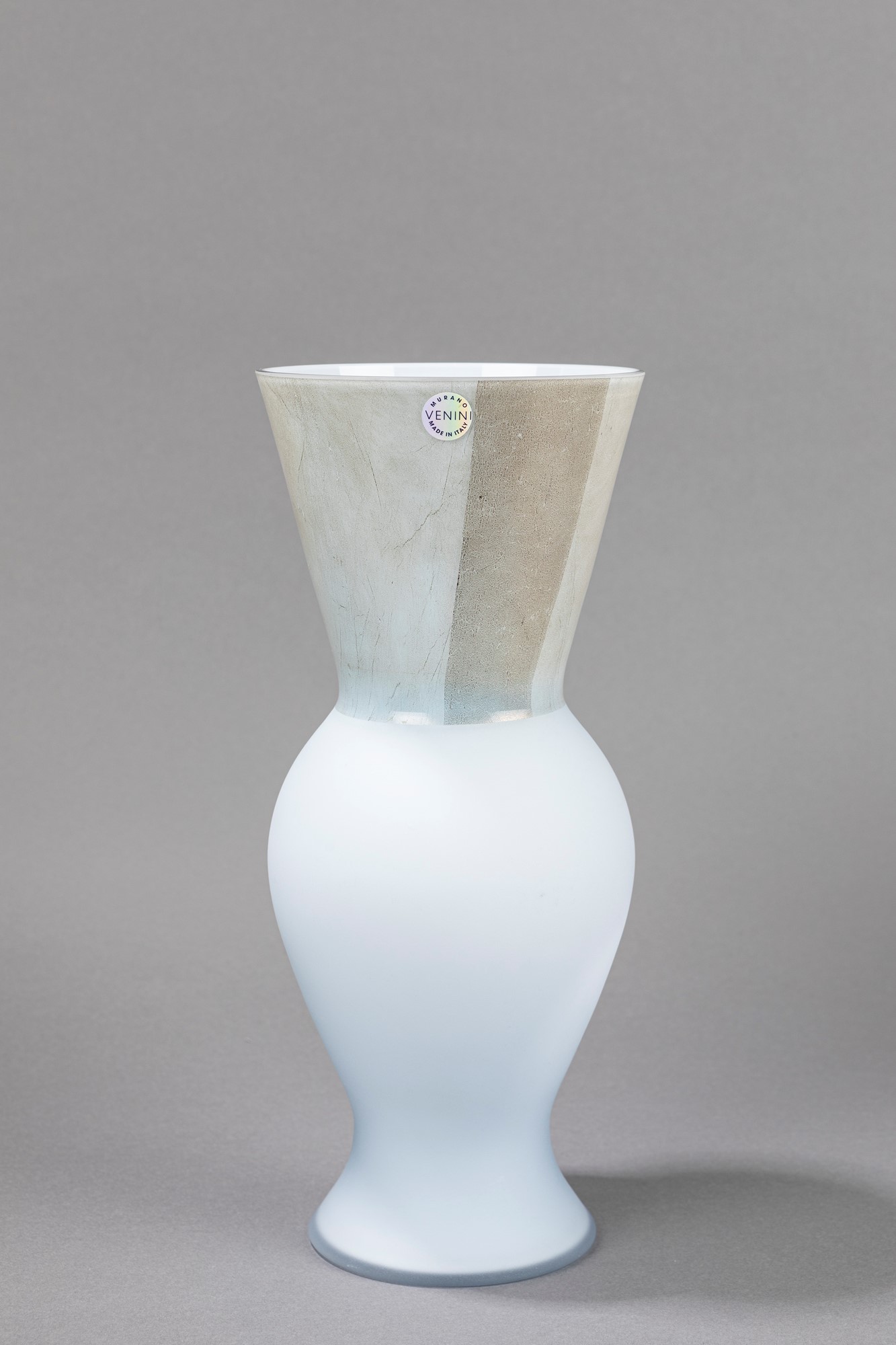 Rodolfo Dordoni - Principeh 30 x 13 cm vaso della serie Principe-Re-Regina, in vetro opalino, decoro effetto metallo applicato a caldo e sabbiato.