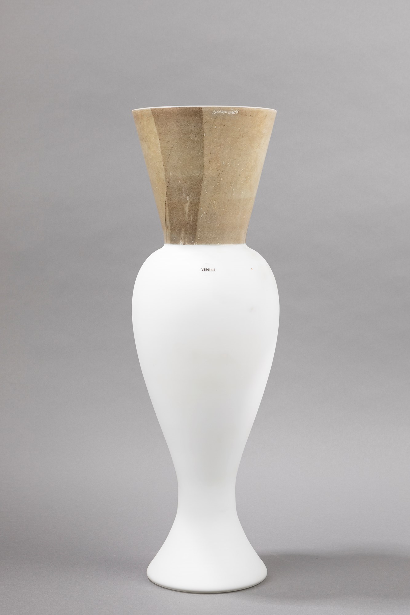 Rodolfo Dordoni - Reginah 50 x diam 15 cm Vaso della serie Principe-Re-Regina, in vetro opalino, decoro effetto metallo applicato a caldo e sabbiato. Produzione Venini. Etichetta originale.