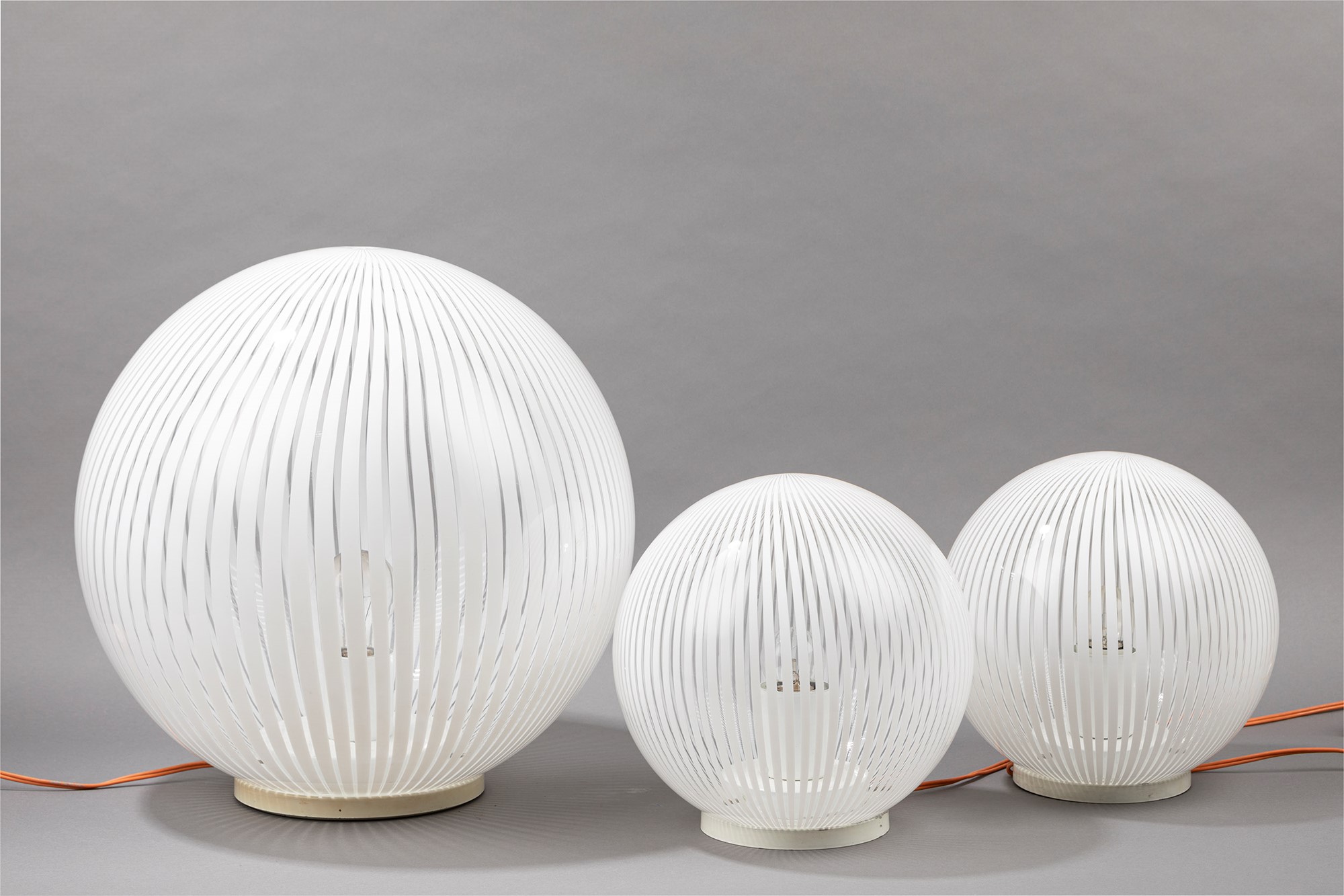 Ludovico Diaz De Santillana - Tessutodiam 39 - 24 - 24 cm tre lampade da tavolo della serie “Tessuto” in vetro soffiato con base in metallo verniciato bianco.
