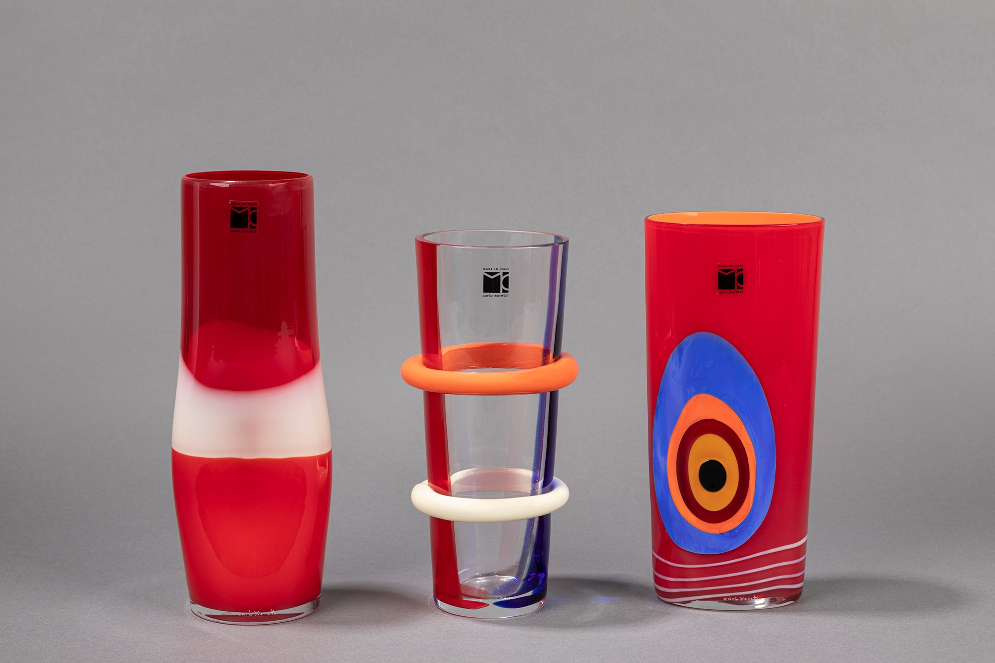 Carlo Moretti - Collezione composta da tre vasi in vetro soffiato di diversi colori.