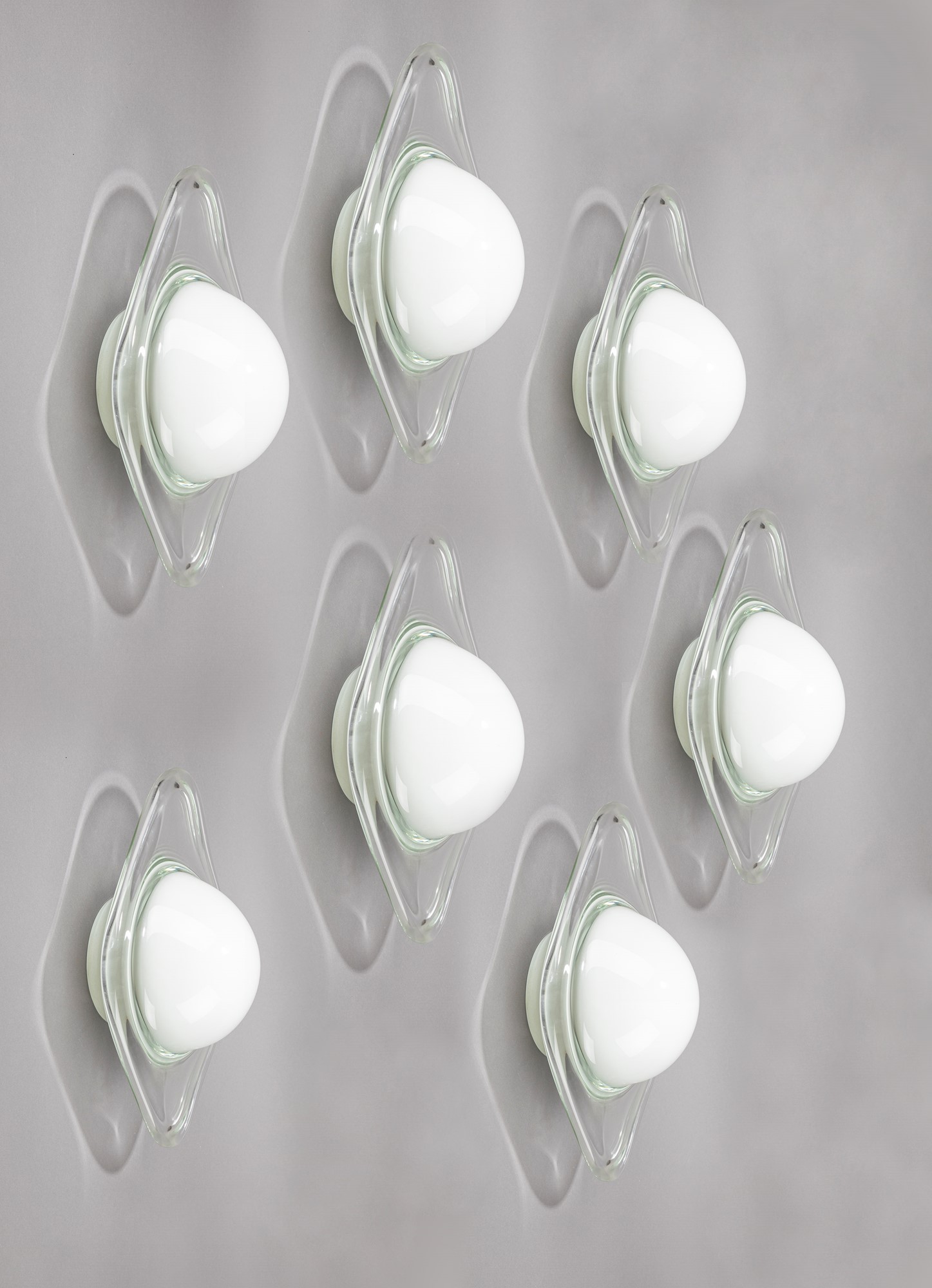 Lino Tagliapietra - Sette lampade da muroh 19 x 37 x 43 cm in vetro lattimo e trasparente.