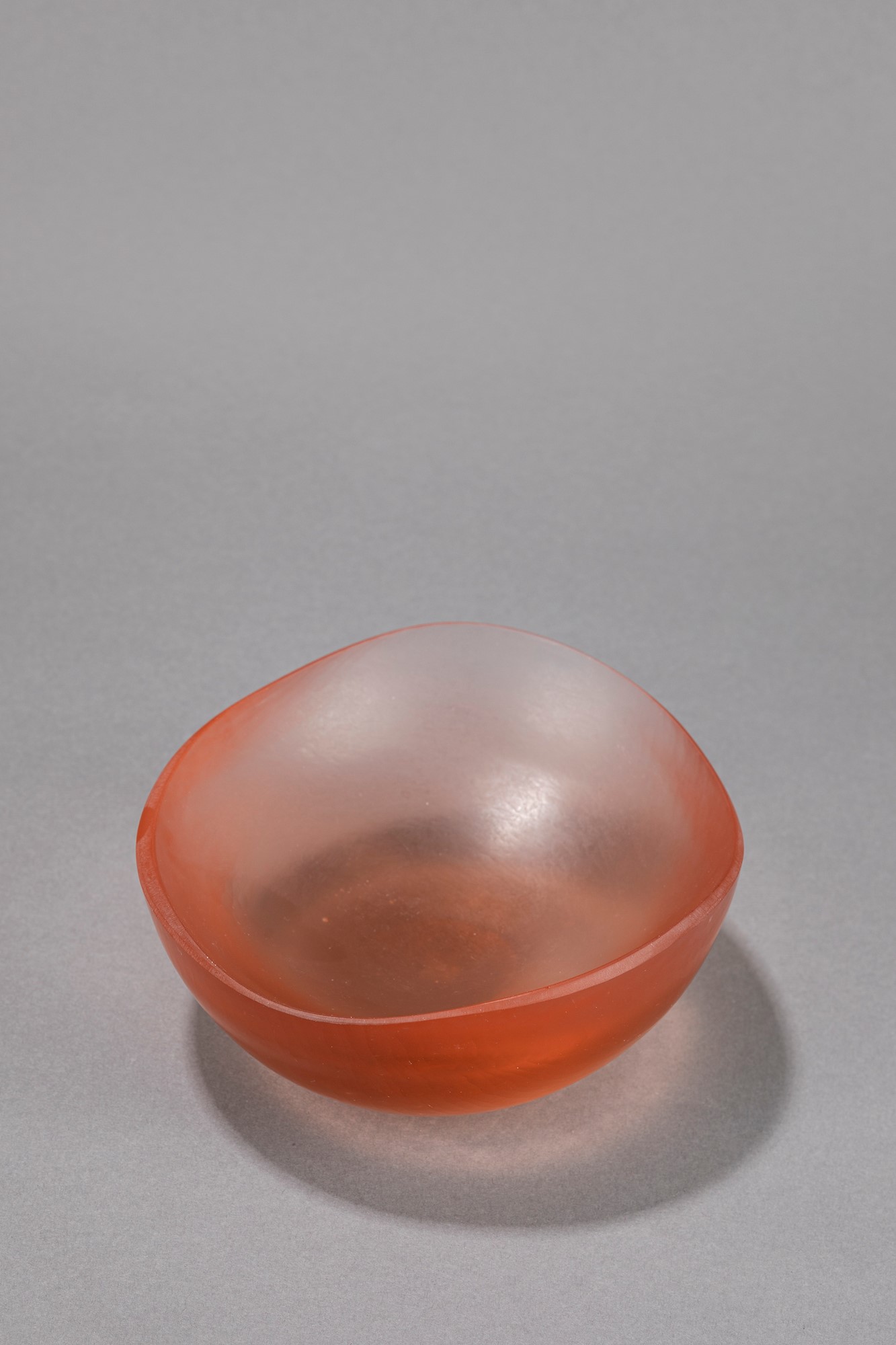 Tobia Scarpa - Ludovico Diaz de Santillana - Coppah 7 x 15 cm della serie Battuti in vetro rosa. Firma ad acido Venini Murano Italia