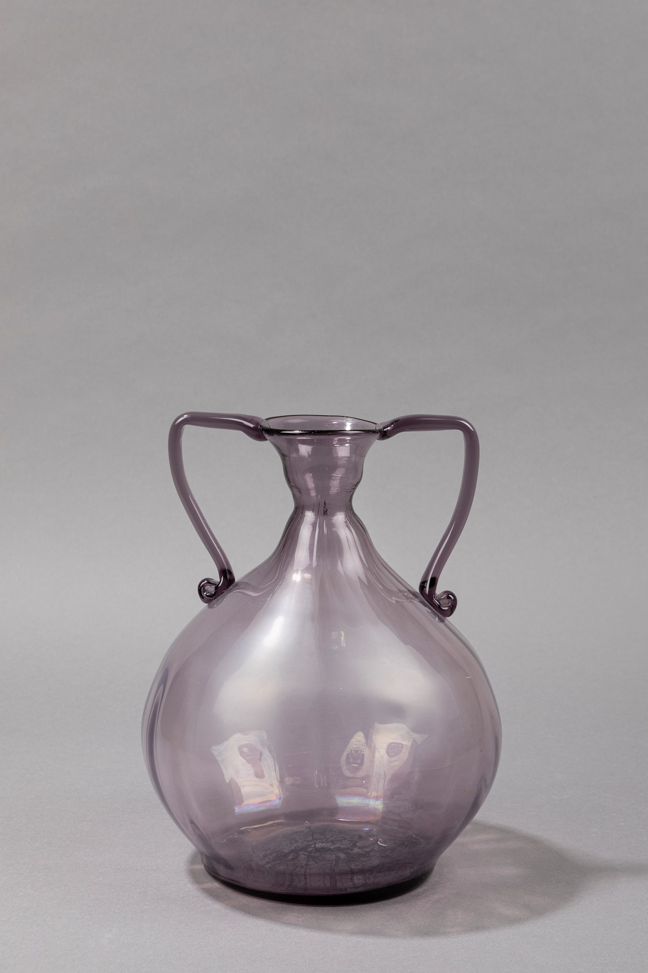 Vittorio Zecchin - Vasoh 24 cm x diam 15 cm in vetro soffiato con anse. Produzione Venini. Difetto di raffreddamento.