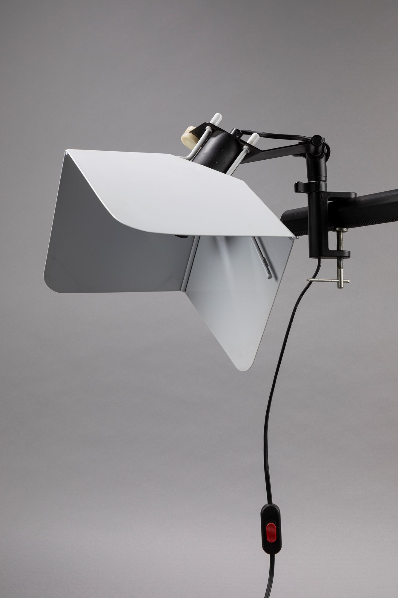 Joe Colombo - Triedroh 35 x 26 cm Lampada a morsetto con paralume in metallo sagomato e piegato in tre parti. Produzione Stilnovo. Etichetta originale.