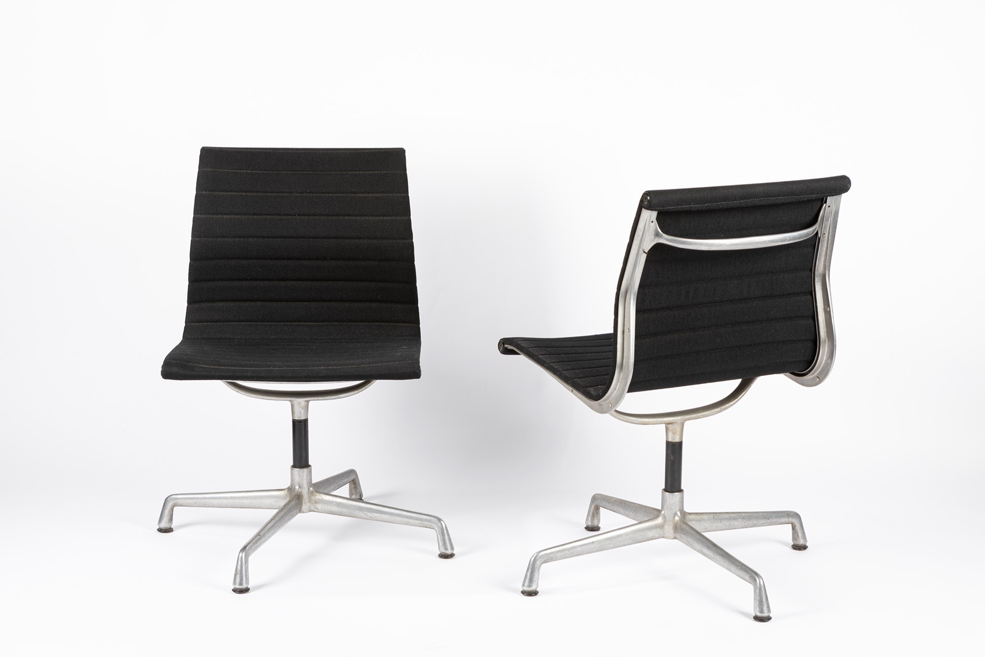 Charles & Ray Eames - Due sedieh 83 x 50 x 49 cm modello EA 108 in tessuto hopsack e alluminio.