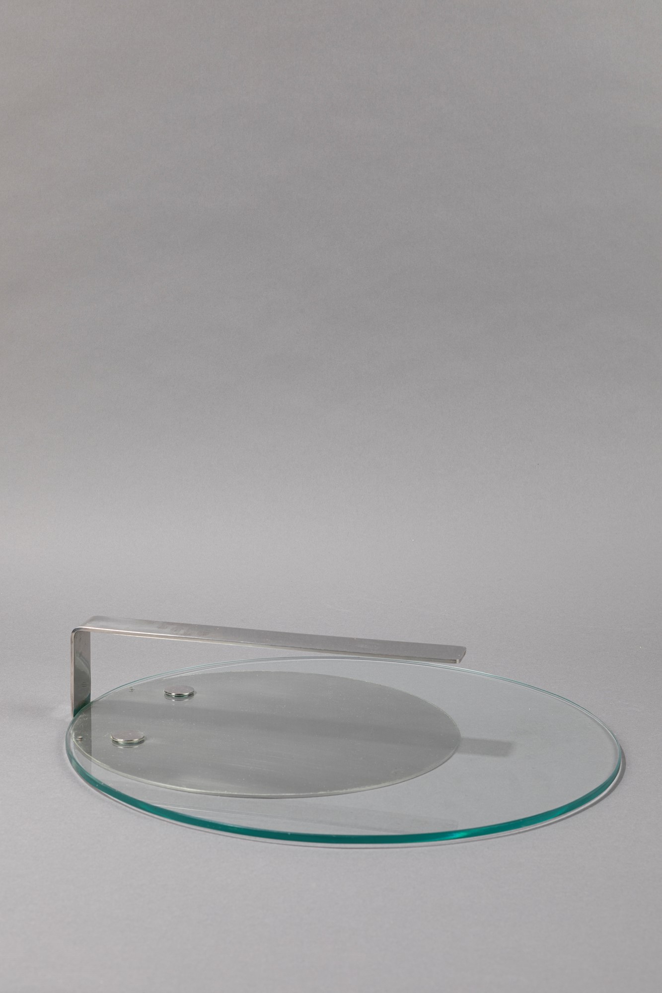 Luciana Gramigna - Sergio Mazza - Centrotavolah 7 x diam 35 cm in acciaio e vetro temperato. Produzione Krupp. Marchio sotto la base.