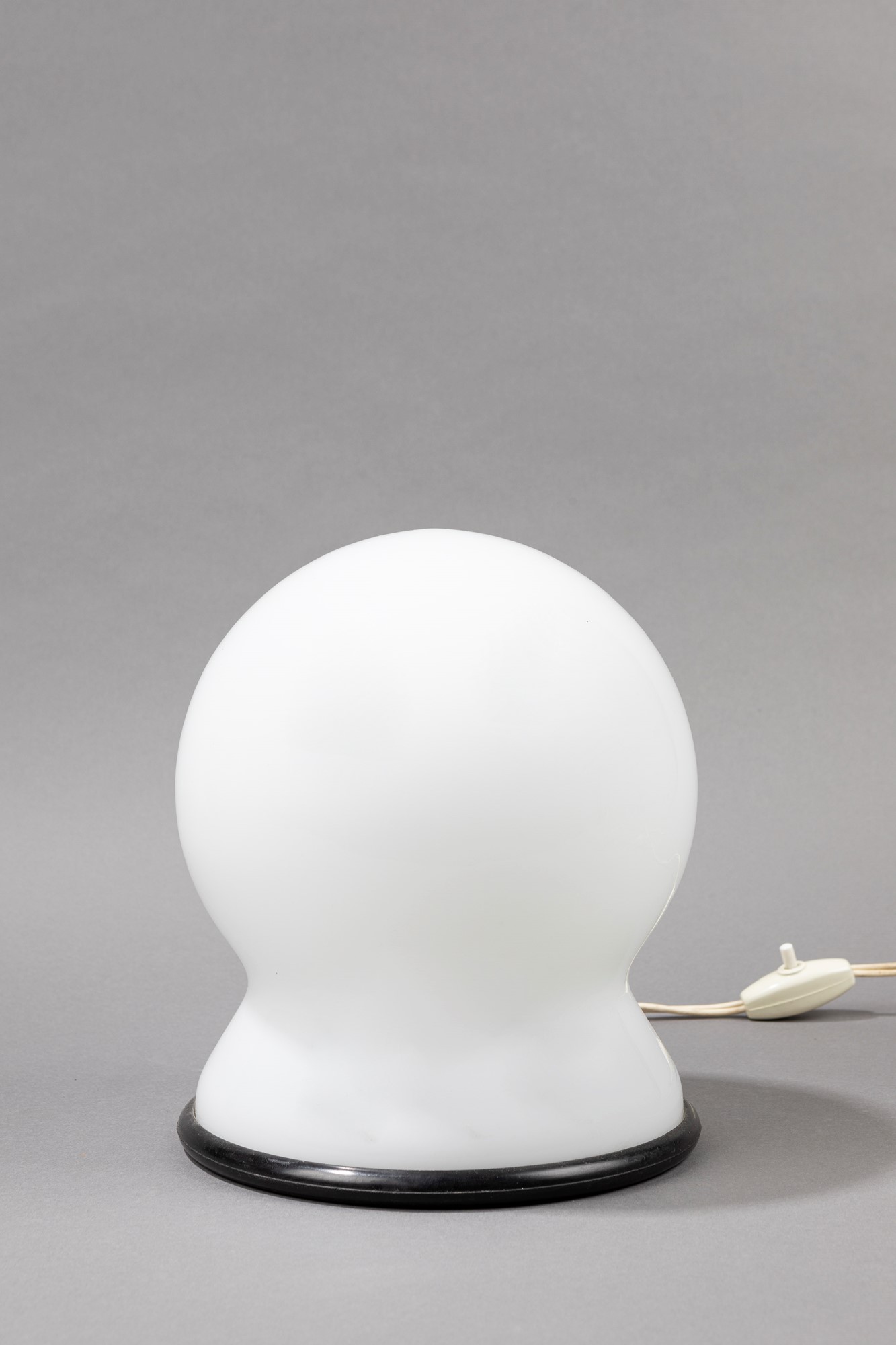 Sergio Asti - Scafandroh 24 x diam 18 cm Lampada da tavolo in vetro incamiciato bianco e base in gomma, firma e marchio di produzione sulla base. Produzione Candle.