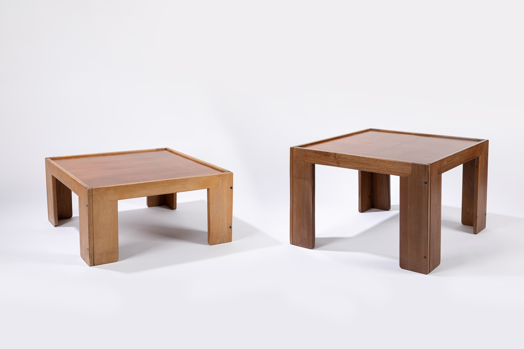 Tobia Scarpa - Due tavolinih 52 x 74,5 x 74,5 cm - h 38 x 75 x 75 cm da salotto in legno. Produzione Cassina. Etichetta originale del produttore.