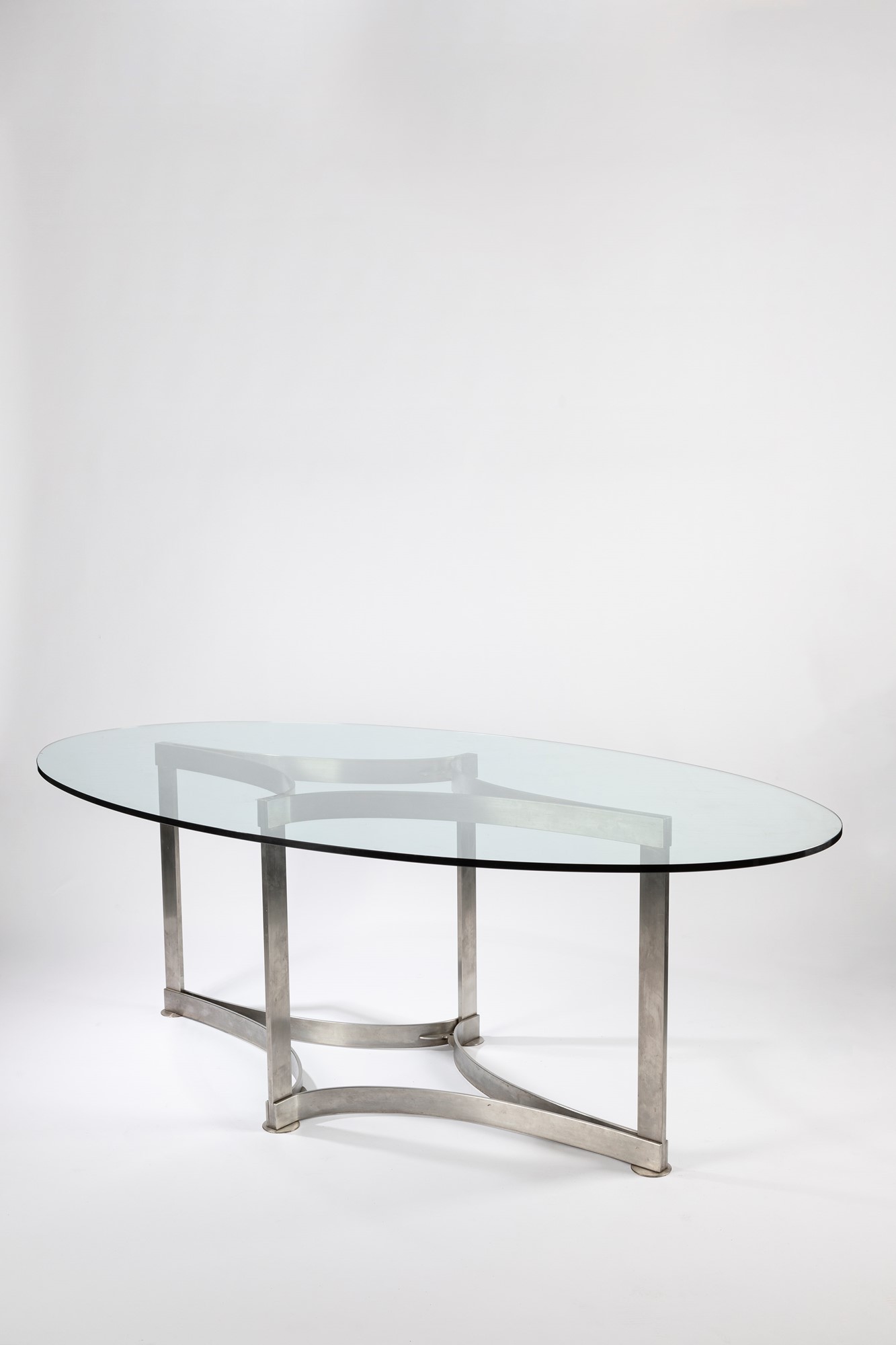 Vittorio Introini - Tavolo da pranzoh 73 x 215 x 121 cm base in acciaio e piano in vetro. Produzione Saporiti