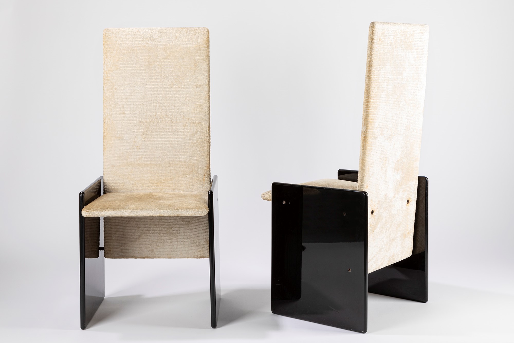 Kazuhide Takahama - Kazukih 108 x 47 x 47 cm quattro sedie in legno laccato nero e velluto color ghiaccio.