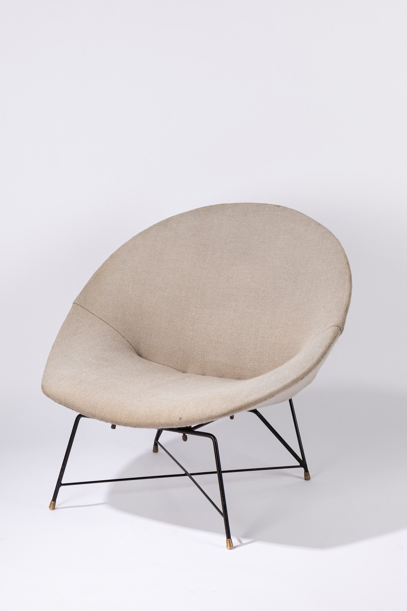 Augusto Bozzi - Poltrona79x85x53 cm con struttura in tondino in metallo con puntali in ottone. Scocca rivestita in tessuto. Produzione Saporiti. Etichetta originale.