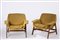 Gianfranco Frattini - Due poltrone72 x 83 x 56 cm Modello 849. Imbottitura in gomma, rivestimento in tessuto. Struttura in legno. Produzione Cassina. Segnalazione Compasso d’Oro del 1956.