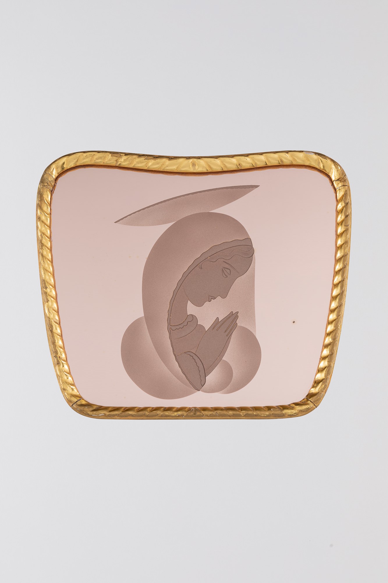 Pietro Chiesa - Gio Ponti - Specchioh 29 x 33 cm con decoro sabbiato. Cornice in legno dorato e laccato. Produzione Fontana Arte.