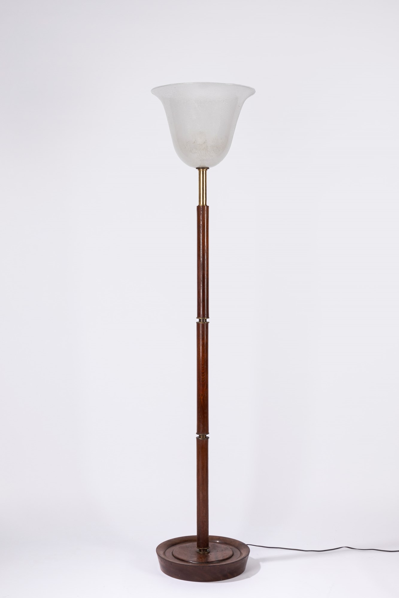 Manifattura Italiana - Lampada da terrah 175 x diam 37 cm in legno, con diffusore in vetro soffiato pulegoso.