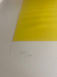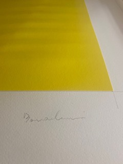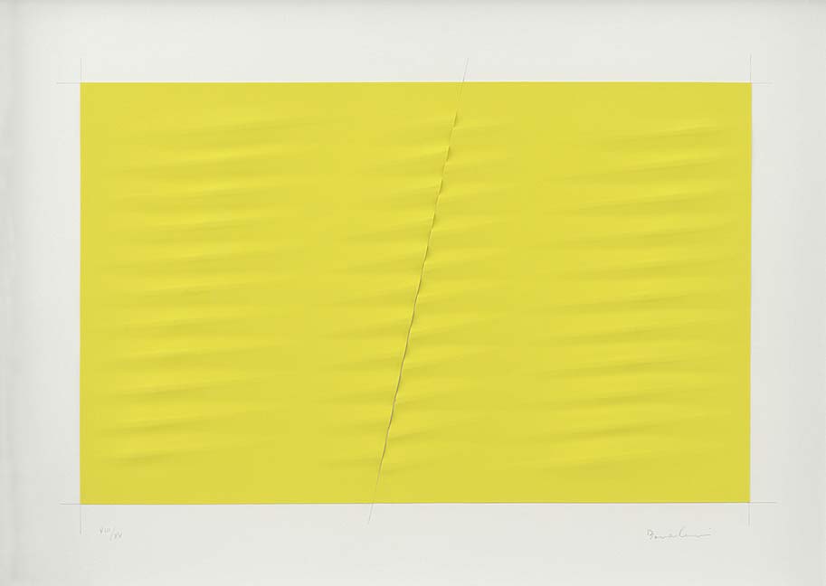 "Giallo (Yellow)". Year 1999. Dry etching on silk-screened Magnani 310g paper, mounted with collage on Fabriano 300g paper. Size 56x76cm. Ed. VIII/XV. Signed lower right and numbered lower left. Provenance: Private Collection, Italy