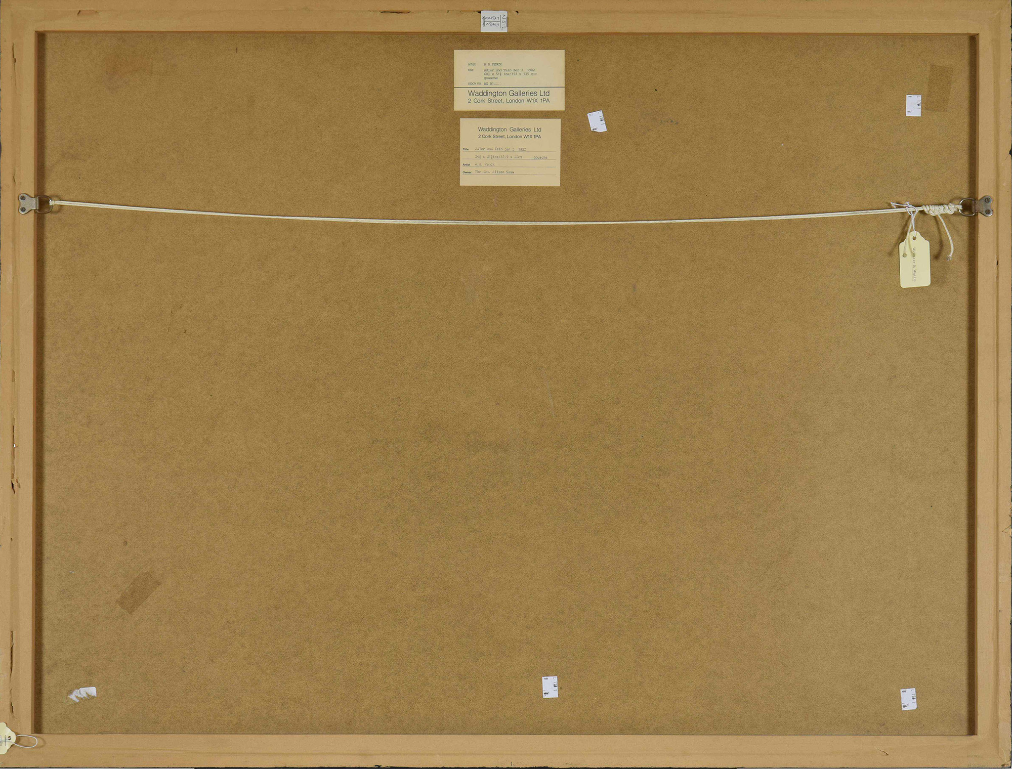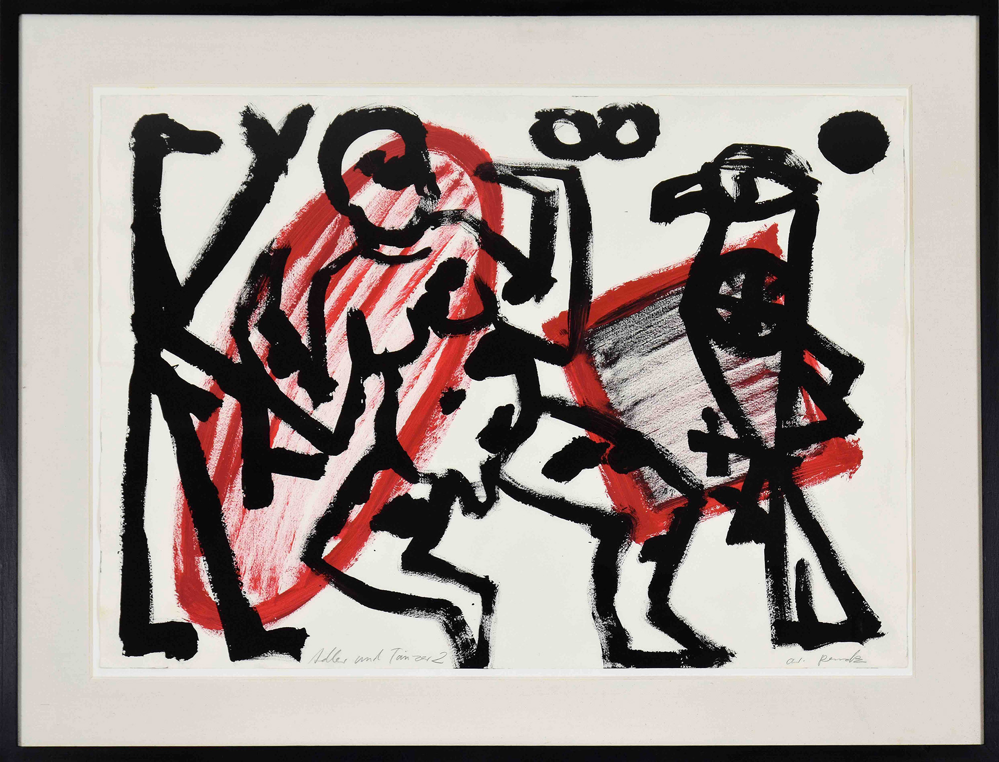 "Adler und Tanzer 2". Gouache on paper. Year 1982. Size 63x87.5cm. Signed lower right and titled lower centre. This work is registered in the A.R. Penck archive at Michael Werner Gallery under the reference RPZ 7385. Provenance: Waddington Galleries, London; Hon, Alison Shaw, acquired from the above, Private collection, London