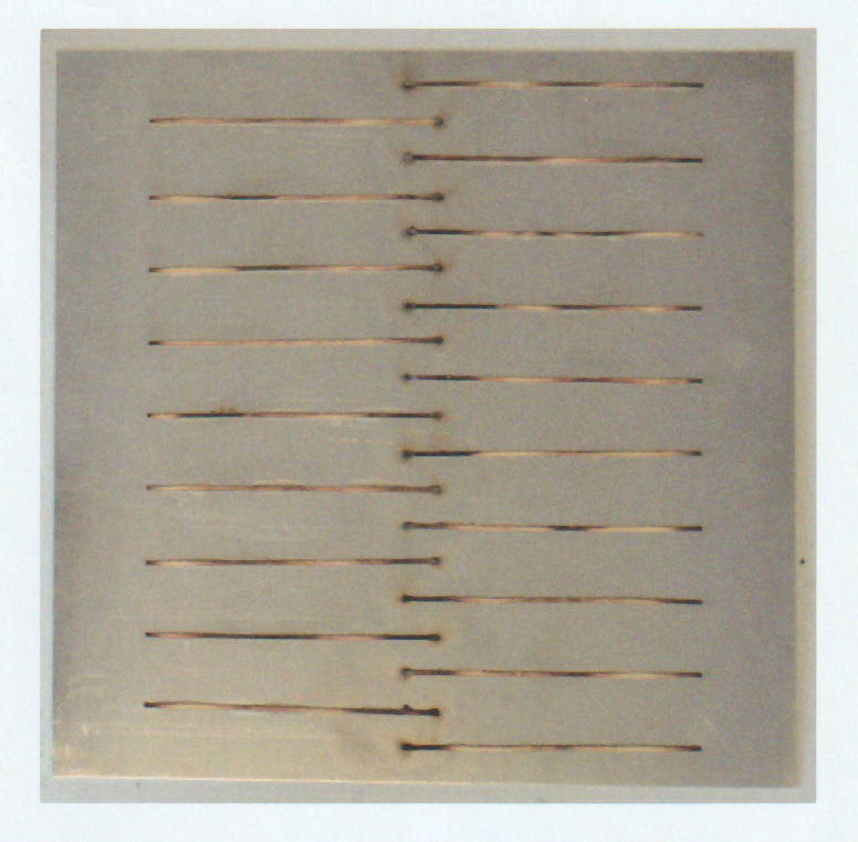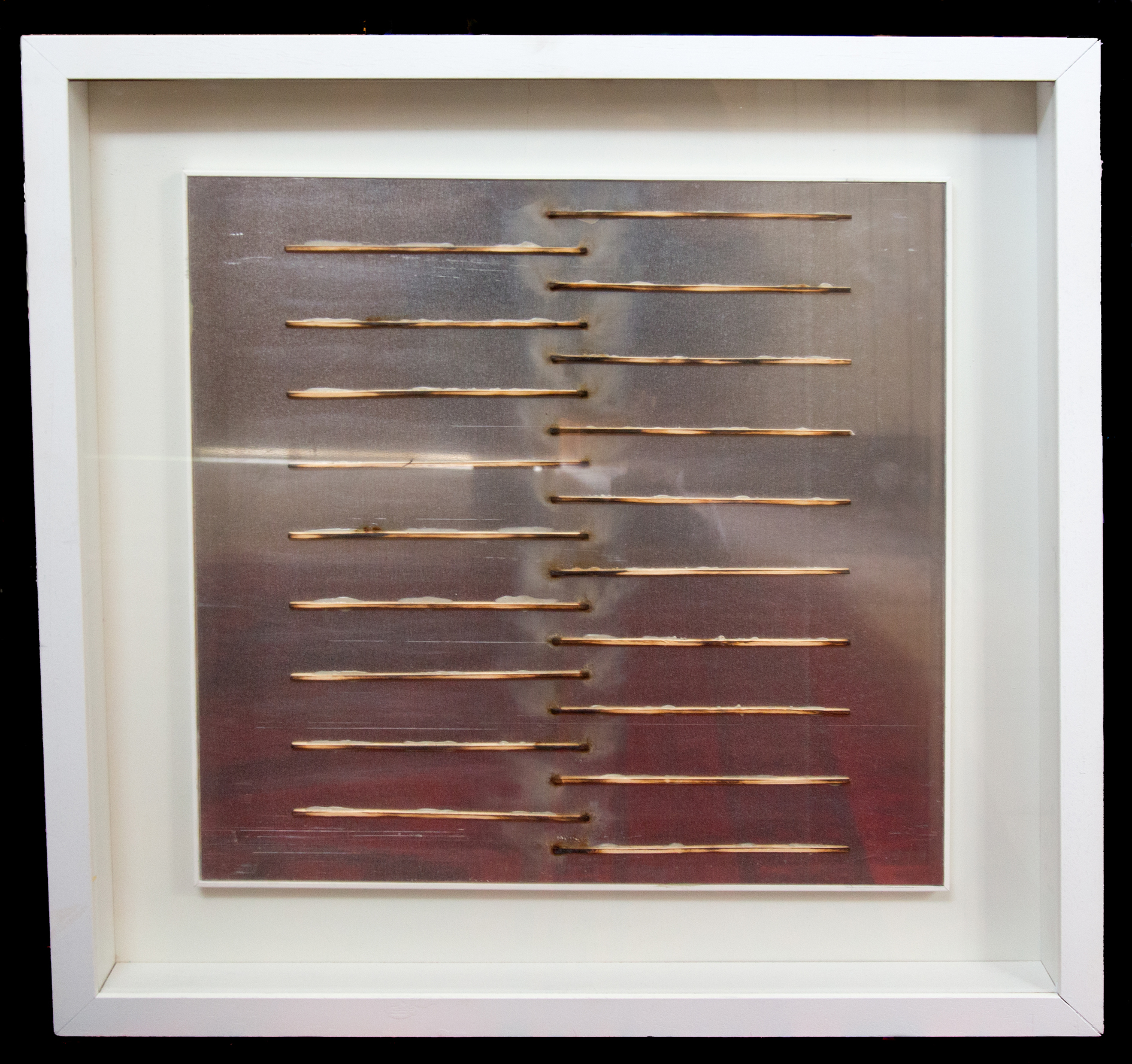 "Dessin de feu". Matches burned on aluminum. Year 2010. Size 50x50cm. Signed and dated on the back. The artwork is accompanied by the certificate of authenticity released by Archivio Opere Bernard Aubertin, Brescia. Provenance: Private Collection, Italy