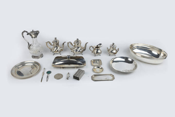 LOTTO DI TREDICI OGGETTI IN ARGENTO