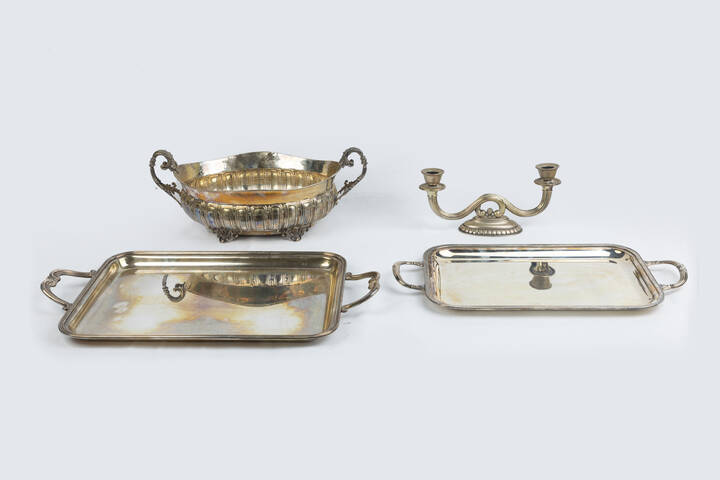 - 2 vassoi di diversa forma e misura con manici. Peso gr 2127,4