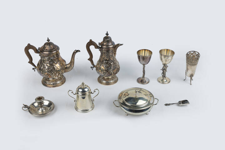 LOTTO DI NOVE OGGETTI IN ARGENTO