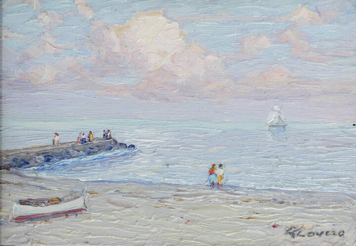 GIOVANNI ROVERO<BR>Mongardino (AT) 1885 - 1971 Noli (SV)<BR>"Spiaggia con figure"