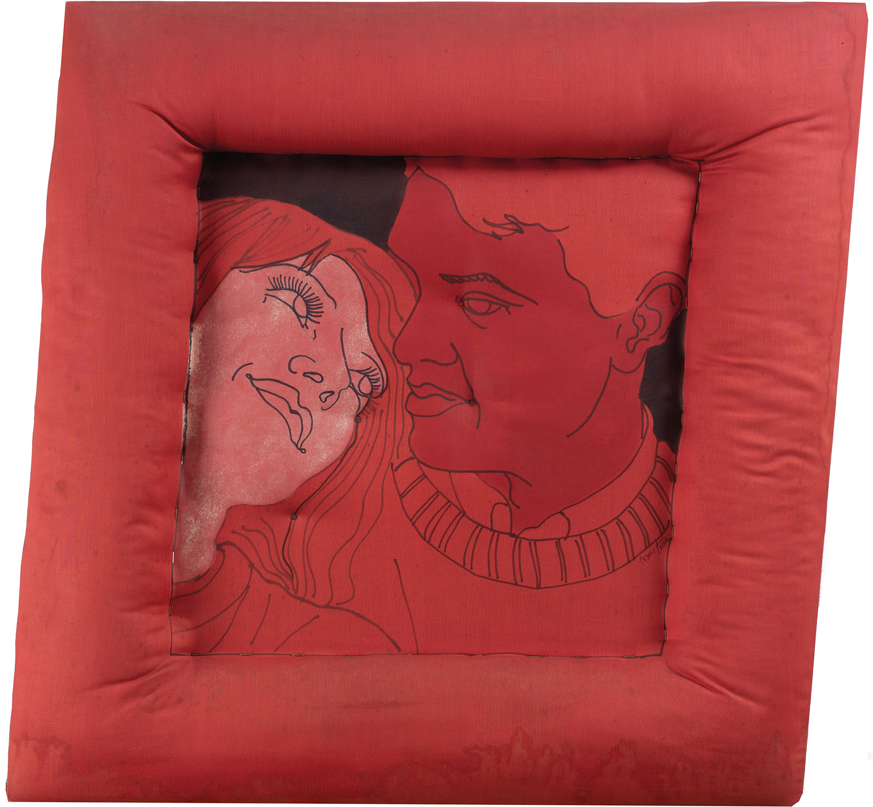Tecnica mista, inchiostro e tessuto trapuntato, cm 70 x 70