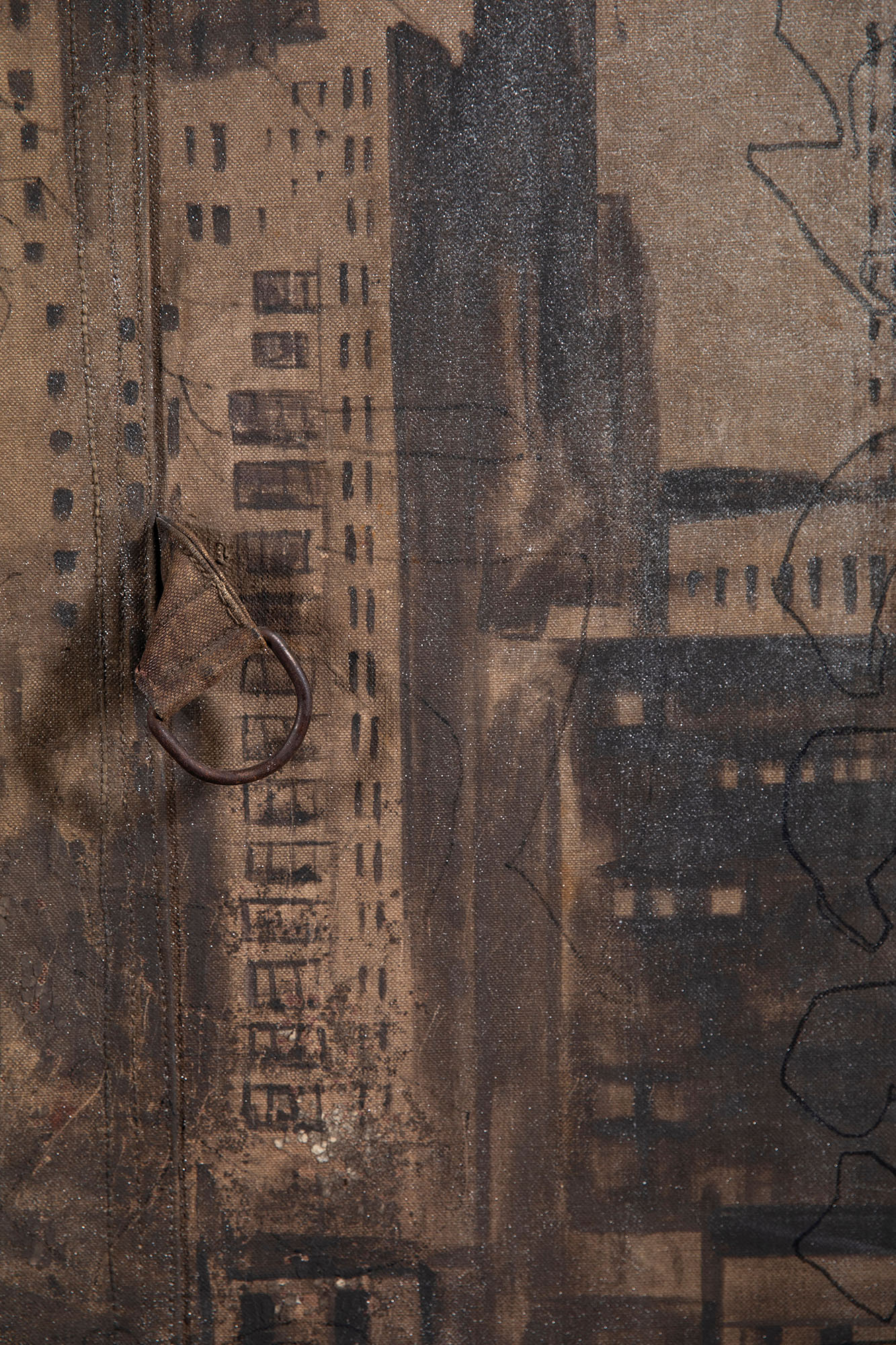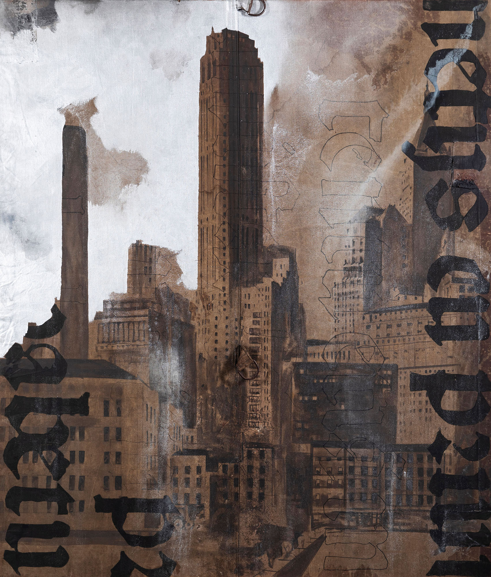 Tecnica mista su tela di sacco, cm 222 x 146