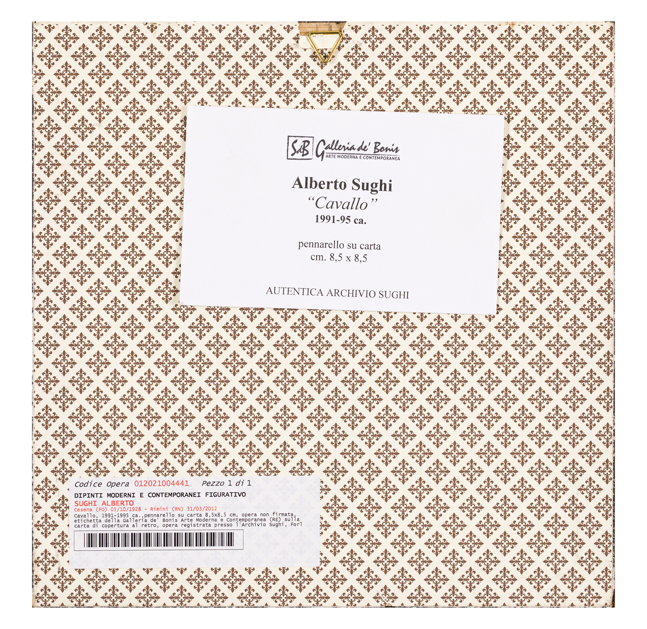 Etichetta Galleria De Bonis (RE) al retro