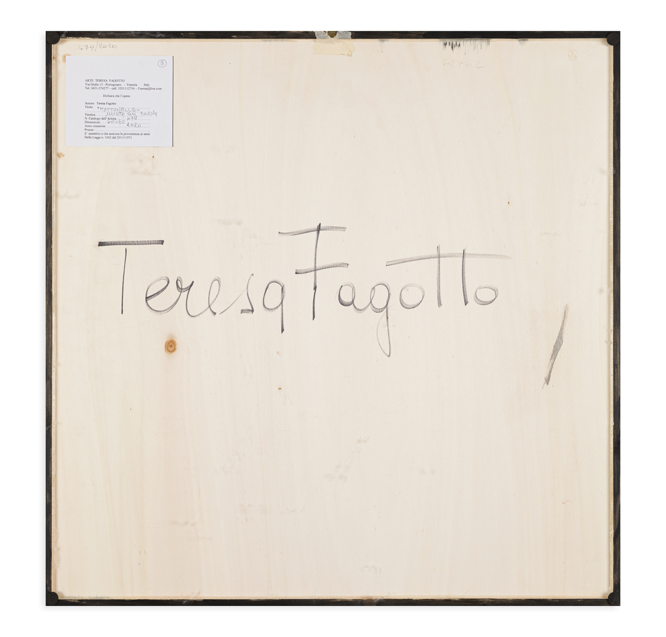 Etichetta dell'artista al retro