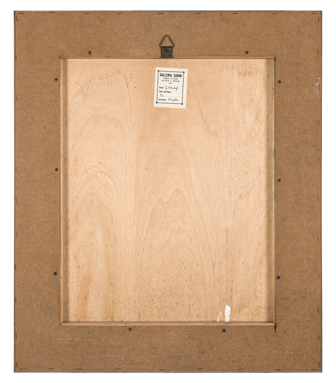 Etichetta della Galleria Carini (MI) al retro