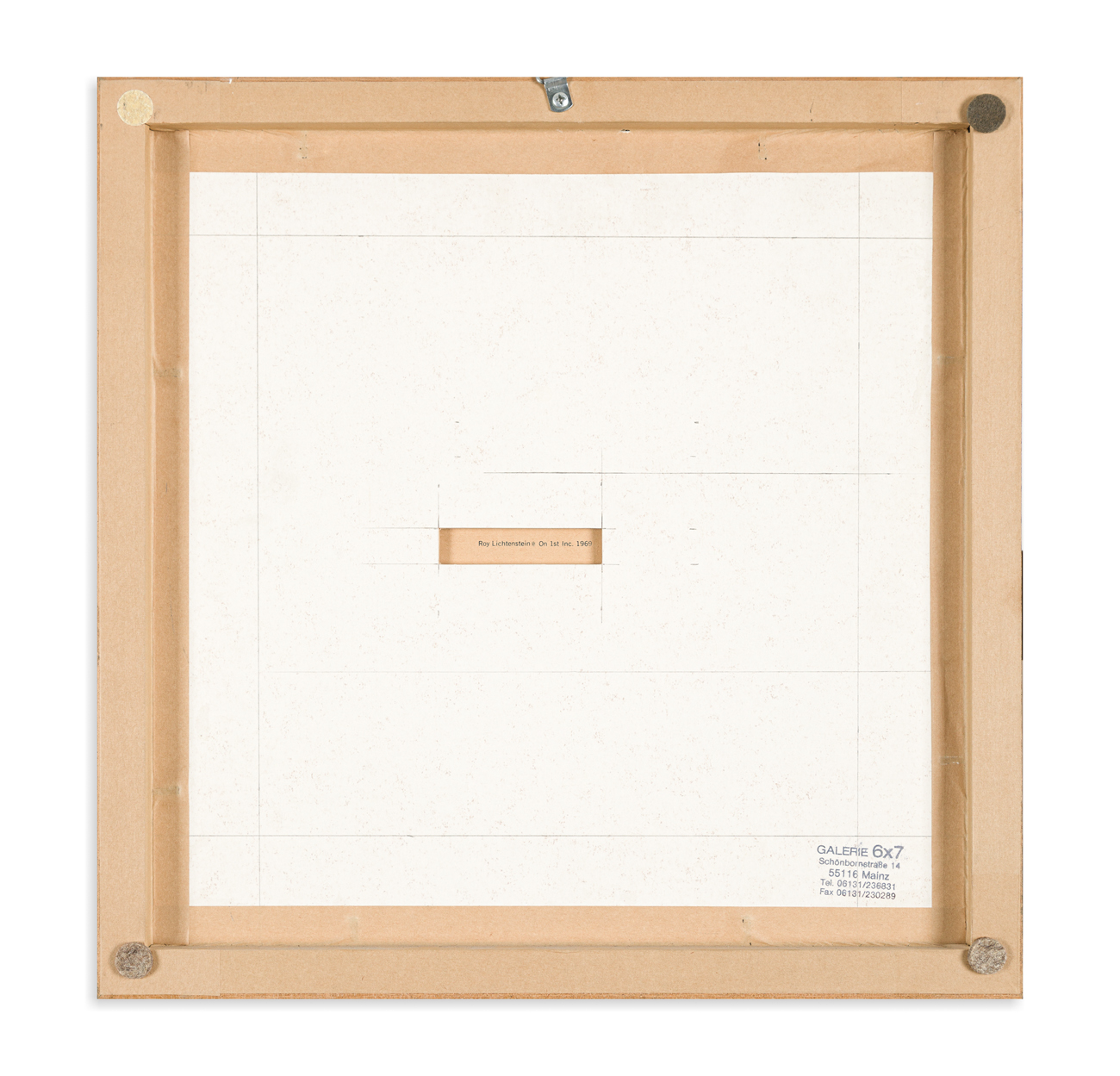 Timbro recante iscrizione 'Roy Lichtenstein © On 1st Inc 1969' sotto la base