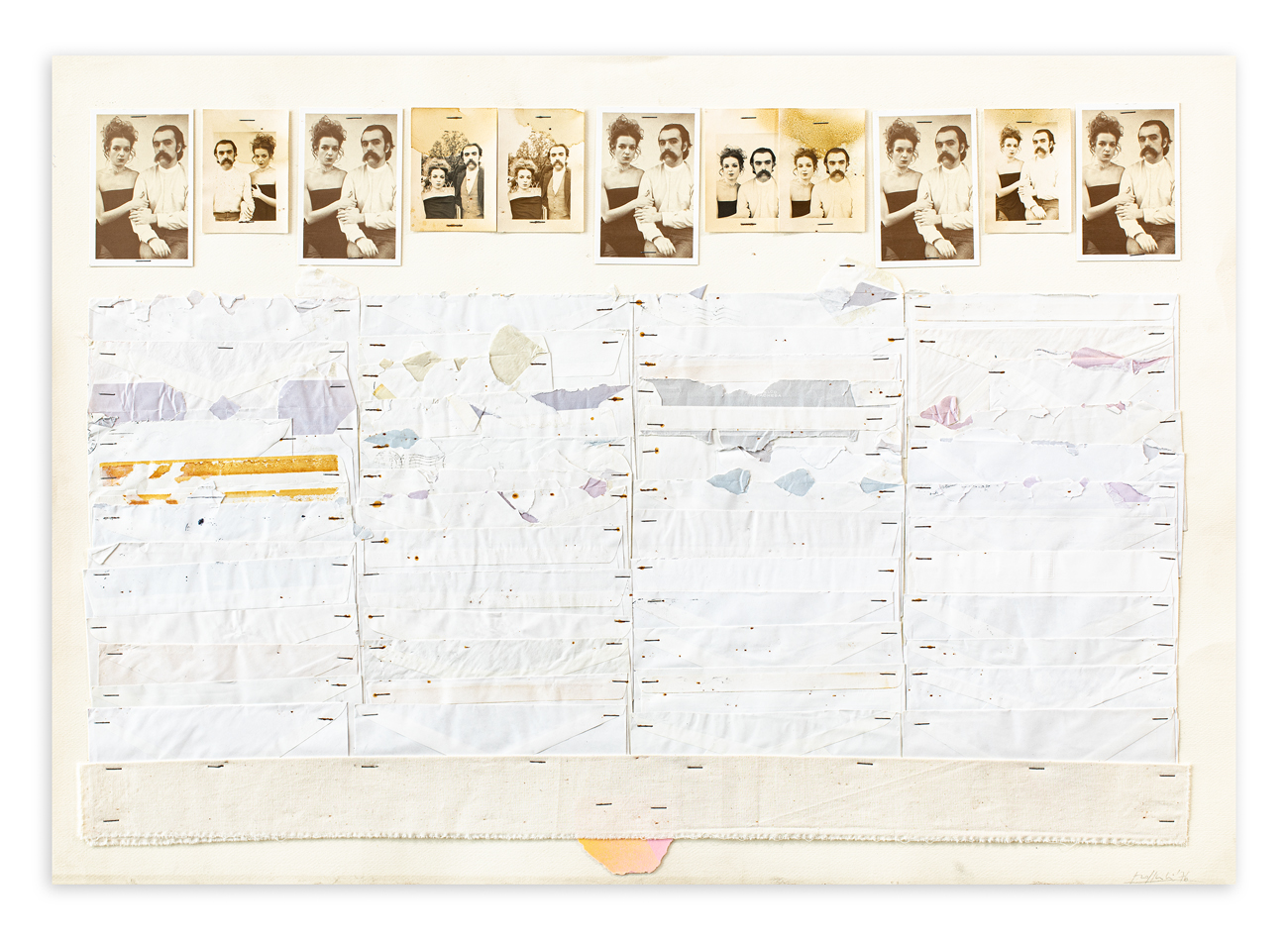 Tecnica mista e applicazioni di buste, tela e fotografie su cartoncino