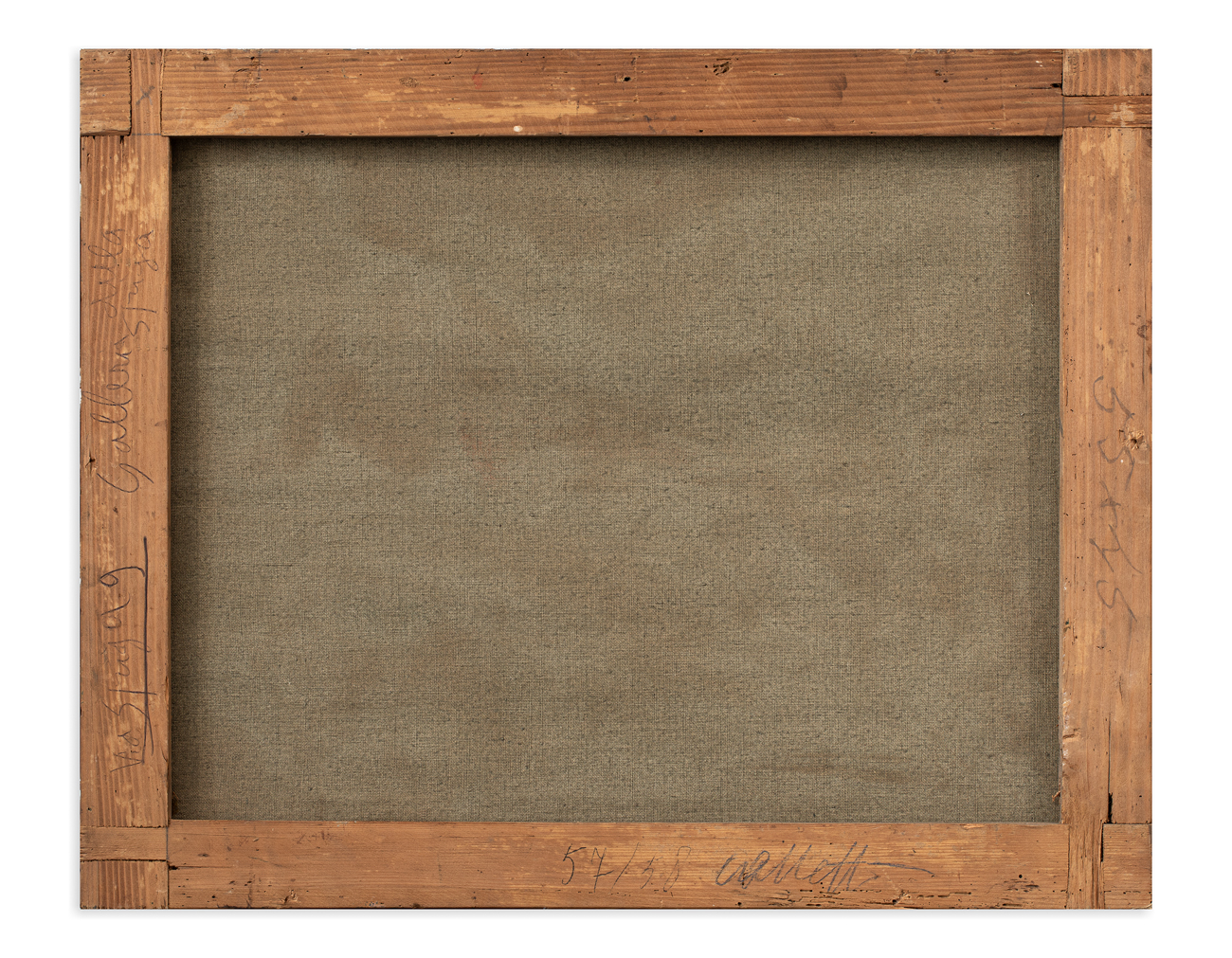 Iscrizione 'Galleria della Spiga (MI)' a matita al retro, sul telaio