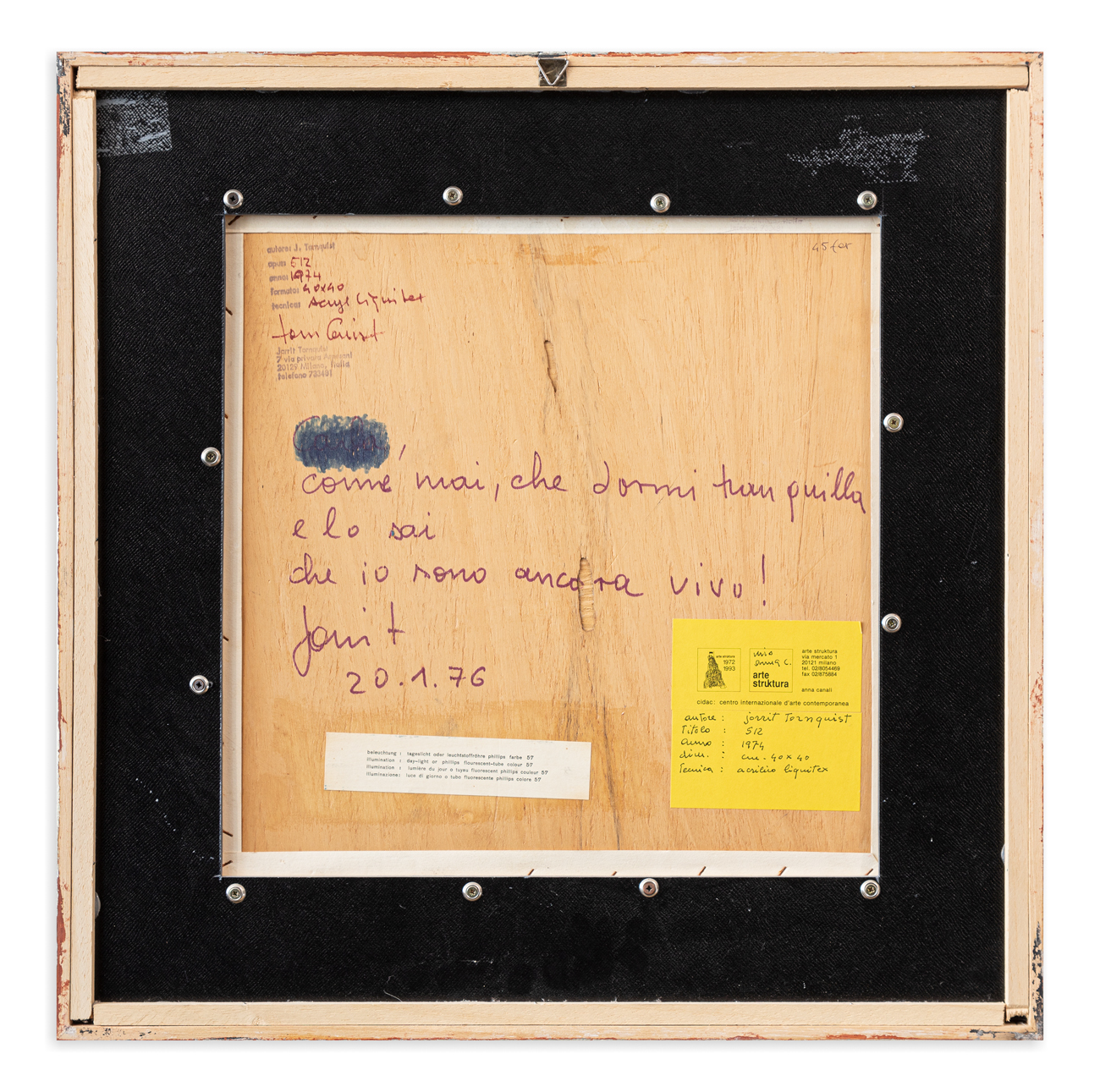 Firma, titolo, datazione e timbro dell'Artista al retro