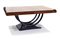 Tavolo allungabile con piano in noce e basamento in legno ebanizzato.