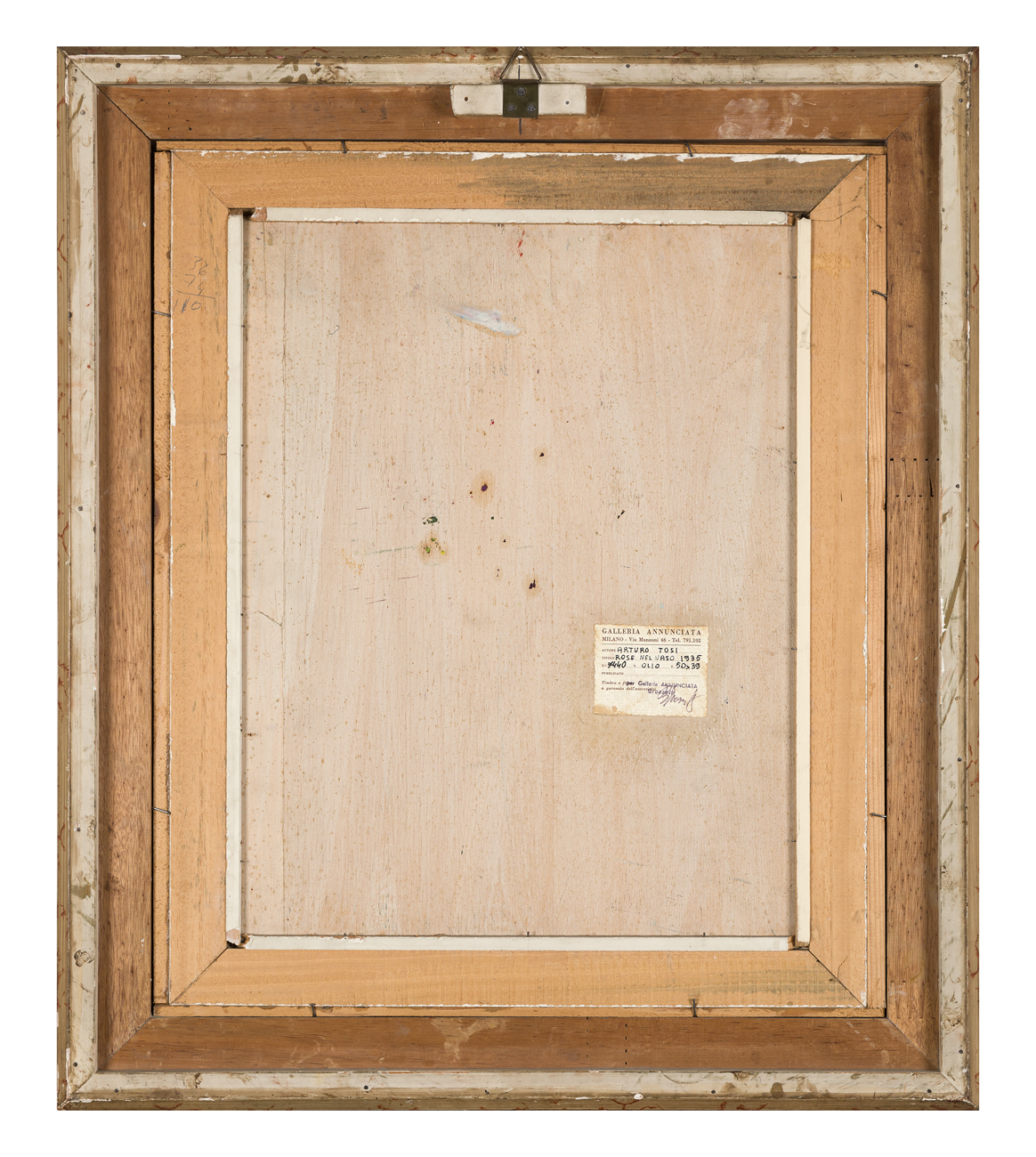 Etichetta della Galleria Annunciata (MI) con relativo numero di inventario e firma di Bruno Grossetti