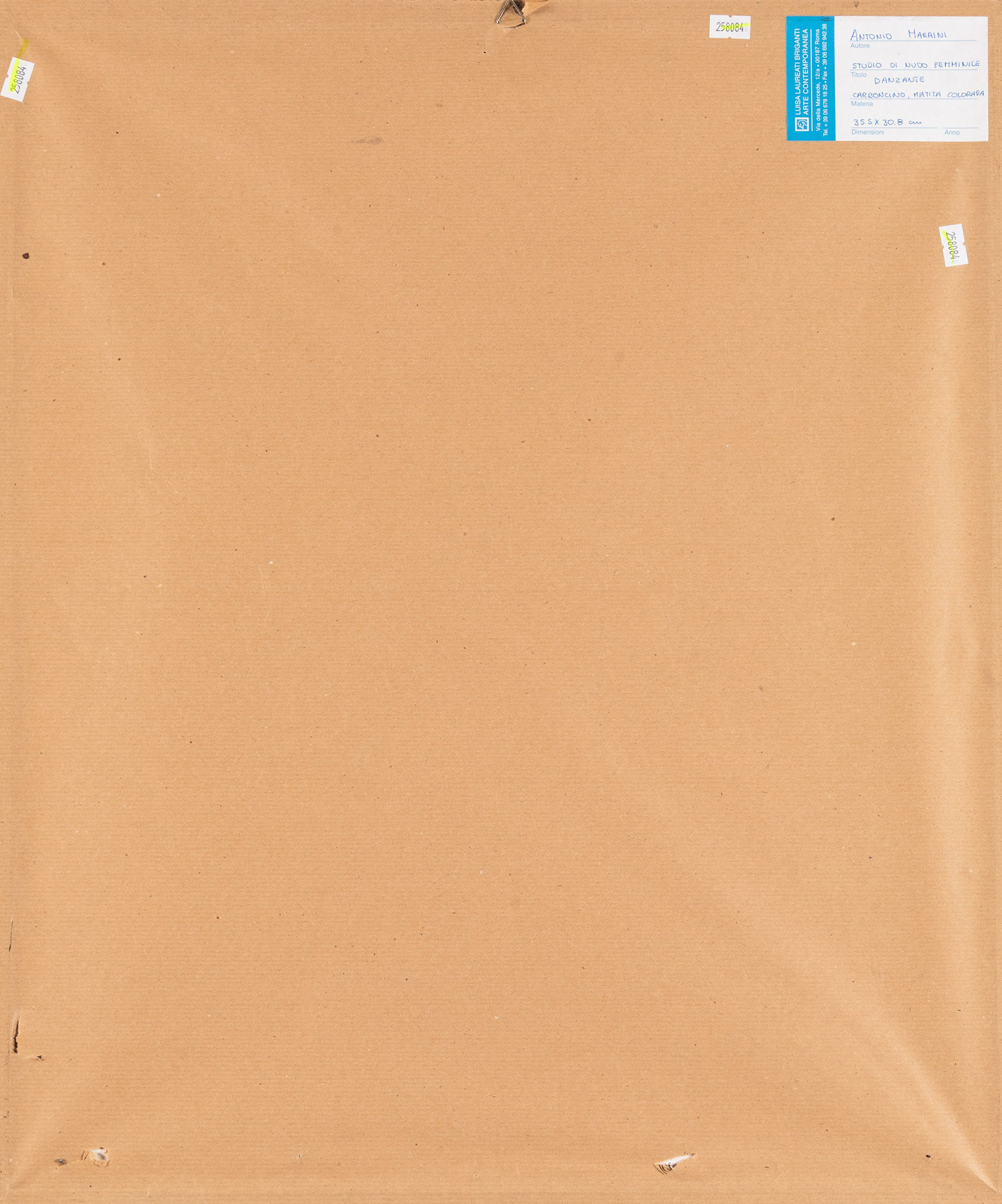 Etichetta al retro della Galleria Luisa Laureati Briganti Arte Contemporanea, Roma