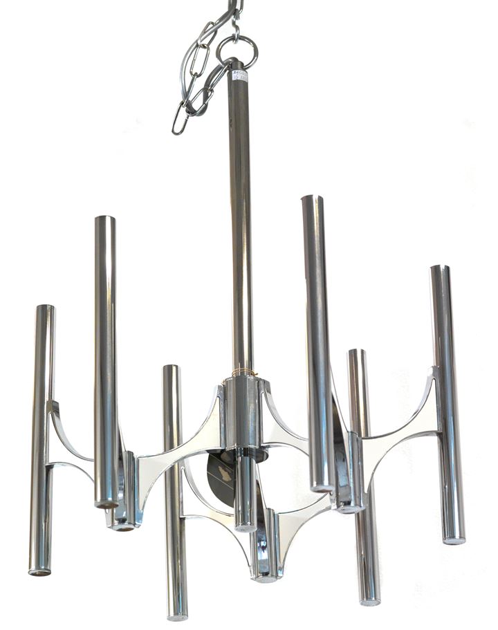SCIOLARI 26360 Coppia di lampadari a sei luci a finitura argento. Etichetta...