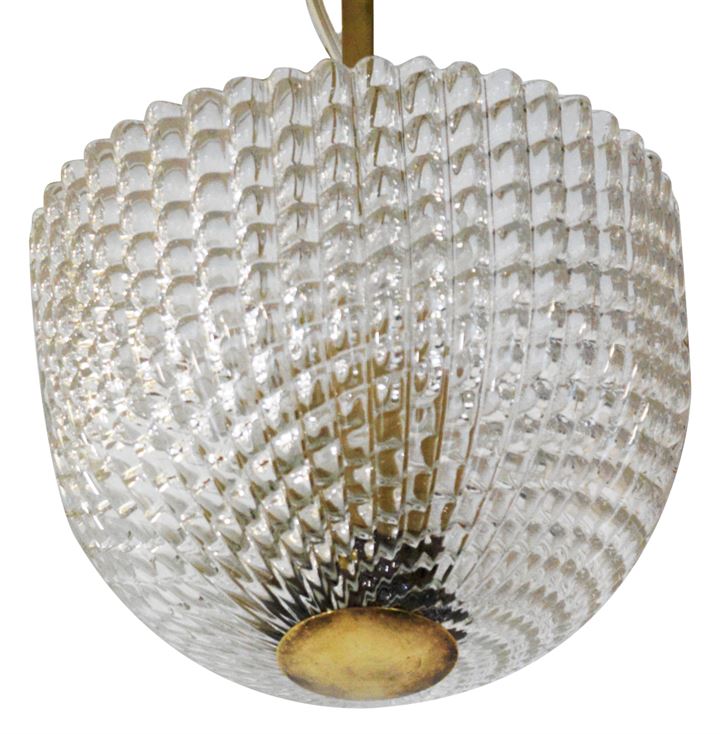 Piccolo lampadario con diffusore in vetro diamante, montatura in ottone.