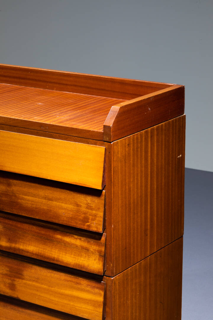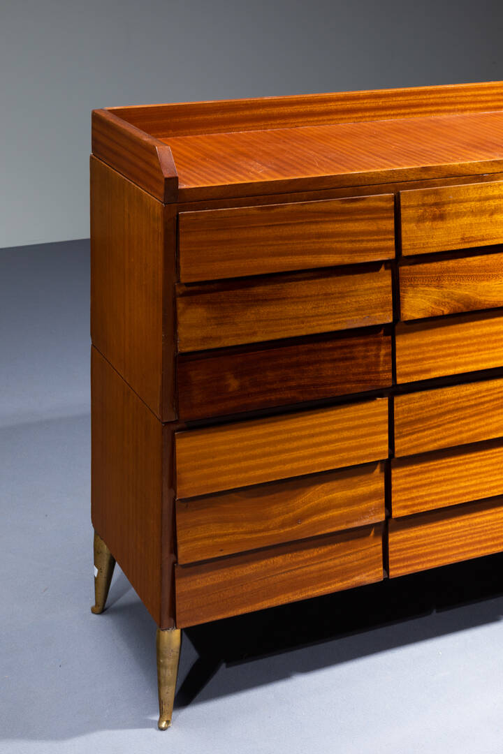 Mobile cassettiera con struttura in legno impiallacciato. gambe in ottone,