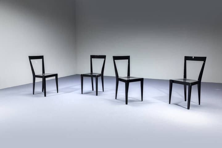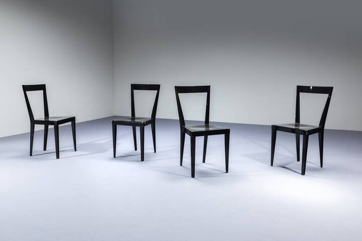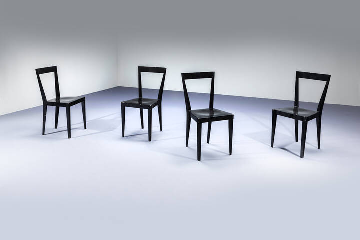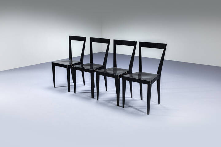 Precedente Lotto 159 Successivo Sant’Agostino - Corso Tassoni 56, 10144 Torino 208 Design Sessione unica mercoledì 13 luglio 2022 ore 16:00 (UTC +01:00) PRODUZIONE ITALIANA PRODUZIONE ITALIANAQuattro sedie in legno laccato.Anni '60cm 84x40x46