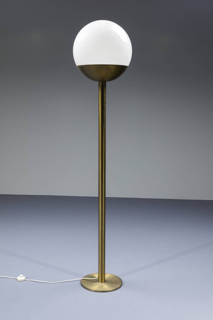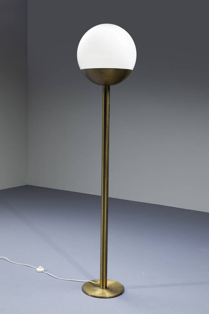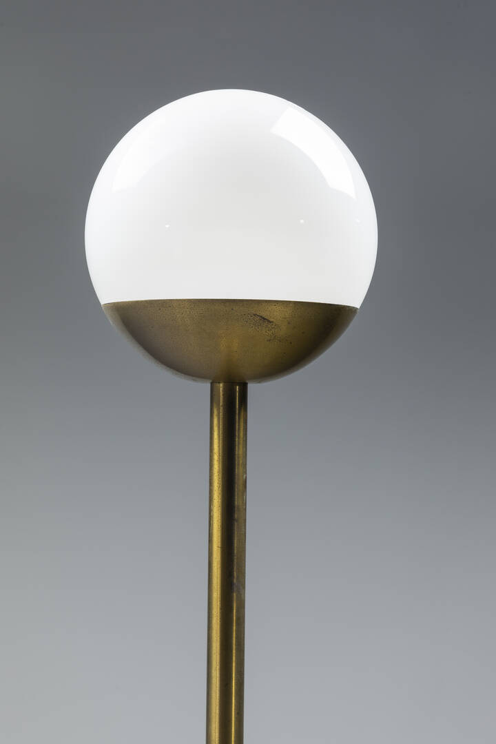 Lampada da terra in metallo, diffusore in vetro opalino.